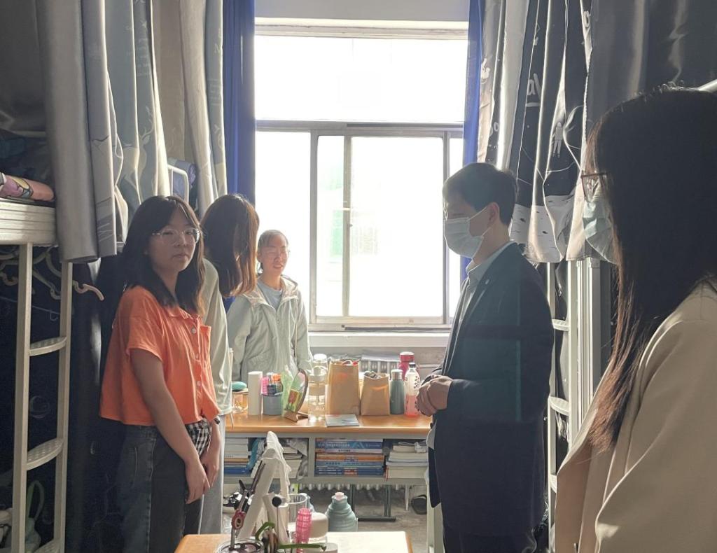 汾清杏香满西河,玉兰醉美邂汾院。为积极贯彻落实上级和学校校疫情防控的各项方针政策和班级三级包联制度,筑牢疫情防控安全防线,4月29日下午4时,62129-35班校级联系领导教务处副处长陈利荣,在班主任李丹、辅导员李小龙的陪同下,深入4号学生公寓走访关心了解学生思想动态、学习生活和疫情防控措施落实情况。