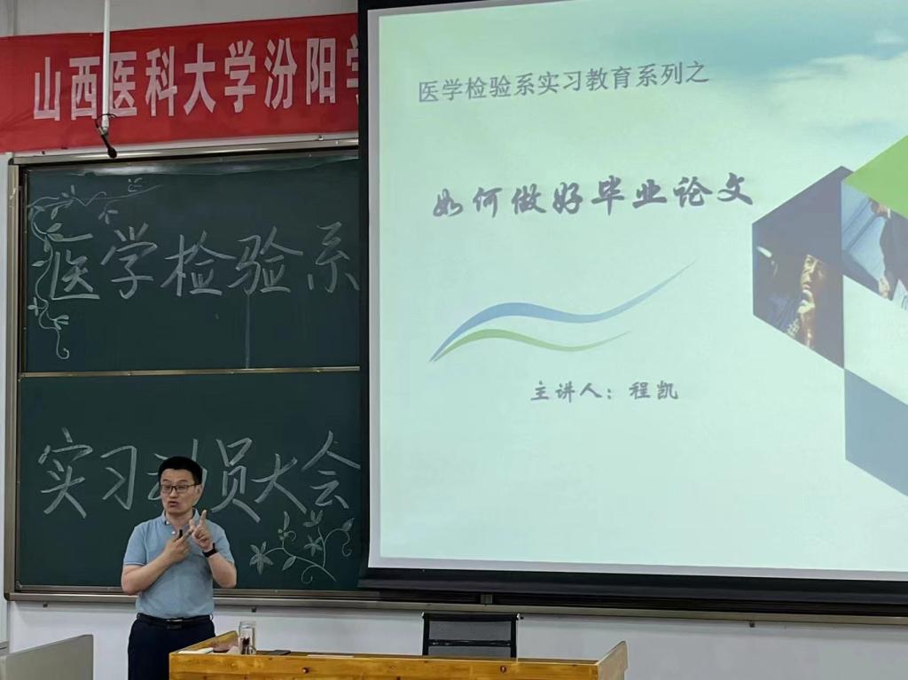 随后,程凯副主任为同学们讲解了毕业论文的撰写规范、选题方法、开题报告、写作流程、相关材料提交等内容,对毕业论文设计各写作给出了具体的指导。他教导学生在实习初期要和实习单位指导老师针对性地讨论毕业论文选题方向,分时段定好论文实验设计和写作安排,高质量完成本科生毕业论文工作。程老师强调,论文写作严禁剽窃、抄袭等学术不端行为。
