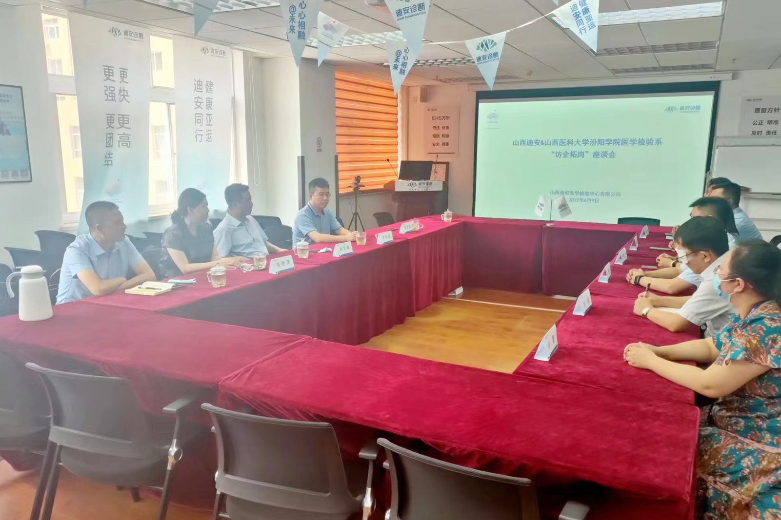 在山西迪安医学检验中心有限公司,公司总经理李曾及人事部门负责人与世界杯官网领导座谈。李曾介绍了迪安的发展历史、现状、人才需求及发展规划等情况,对世界杯官网实习生、毕业生给予了高度评价。山西迪安医学检验中心有限公司领导表示,2022年将重点考虑择优录用世界杯官网部分毕业生。世界杯官网党委委员、副院长韩宝森介绍了学校的基本情况及“访企拓岗促就业”专项行动的目的,代表学校感谢相关企业多年对学校办学和就业工作的支持,希望进一步加强校企合作,加强产学研合作,形成协同育人效应,挖掘开发更多的就业机会和岗位。双方深入交换了人才培养合作等方面的意见。