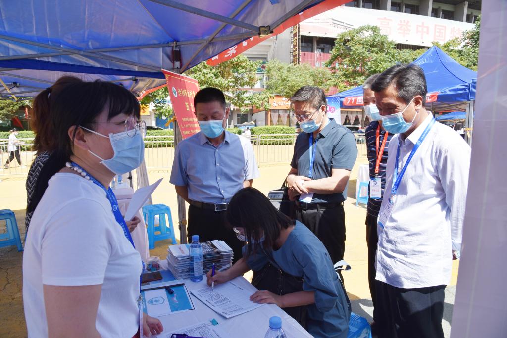 校党委书记闫敬来,党委委员、副院长韩宝森走进双选会现场,详细了解招聘单位的行业分布和用人需求情况,并与用人单位和学生进行了深入交流。各教学系部党总支书记、主任、党总支副书记、副主任,学生工作部(处)、教务处、保卫处等相关部门负责同志,毕业班辅导员(班主任)全程参与。