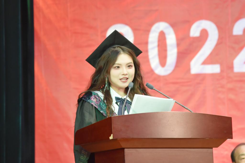 毕业生代表、护理学系刘梓萌同学发言,表达了对母校的深情祝福与深厚感激之情。教师代表、医学博士、硕士生导师李卫萍副教授与同学们分享了宝贵的人生感悟,勉励同学们心怀大爱、脚踏实地、做奋斗之人。