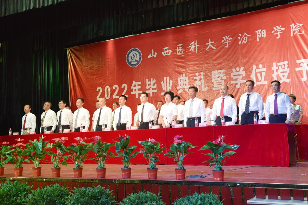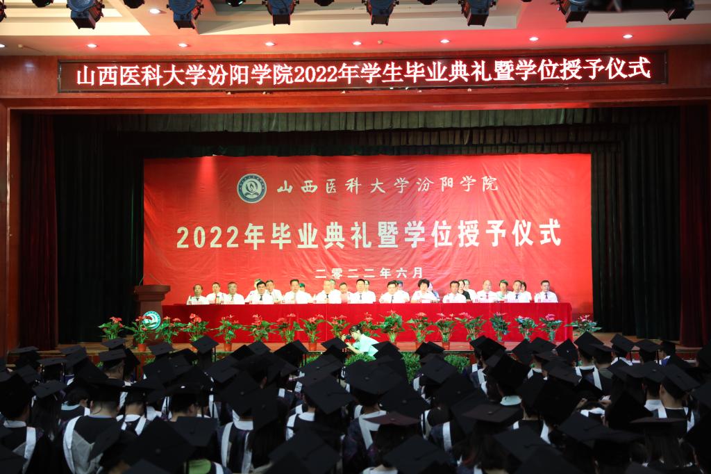 党委副书记、院长孟小平作了热情洋溢的致辞。孟小平院长代表学校向2331名毕业生表示祝贺,向哺育、培养、支持学生成长成才的父母、老师和亲友表示感谢,并与同学们一起回忆了在汾阳学院度过的美好时光,展望了学校的发展方向。孟院长对即将离开学校跨上新征程的同学们提出三点希望:一是希望同学们坚守初心,心怀国之大者。在新冠肺炎疫情席卷武汉时,汾阳学院百余名校友冲锋在前、逆行出征,舍身忘我护佑人民安康,他们将“小我”融入“大我”,充分彰显了汾阳学院人的家国情怀和责任担当,走出了更有价值的人生之路。希望同学们向优秀校友学习、向前辈学习、向榜样学习,坚持“人民至上、生命至上”,始终心怀“国之大者”,心系“国家事”、肩扛“国家责”,做到经得起风雨、受得住磨砺、扛得住摔打,争做时代前列的奋进者、健康中国的开拓者、救死扶伤的奉献者,书写更有高度、更有境界、更有品味的无悔青春;二是希望同学们坚定信心,担当复兴大任。始终保持终身学习、奋发有为的精神态度,始终坚持宽广豁达、宁静致远的处事方式,把在学校所积累的专业基础和临床技能,内化为从容应对惊涛骇浪的深厚底气,将所具备的忧患意识和底线思维,历练成抵御风险挑战的根本保证,面对困难不抱怨,面对逆境不气馁,以开放自信的姿态行走世界,以青春之我、奋斗之我、自强之我,为祖国医疗卫生事业发展铺路架桥,为实现中华民族伟大复兴添砖加瓦。三是希望同学们永葆恒心,争做事业闯将。日日行,不怕千万里;常常做,不怕千万事。希望同学们能耐得住寂寞、守得了孤独,即使身处暗巷、绝境,都能够坚持恒心、永久奋斗,在新的征程上勇当开路先锋、争当事业闯将,在不懈奋斗中放飞人生梦想、成就事业华章。