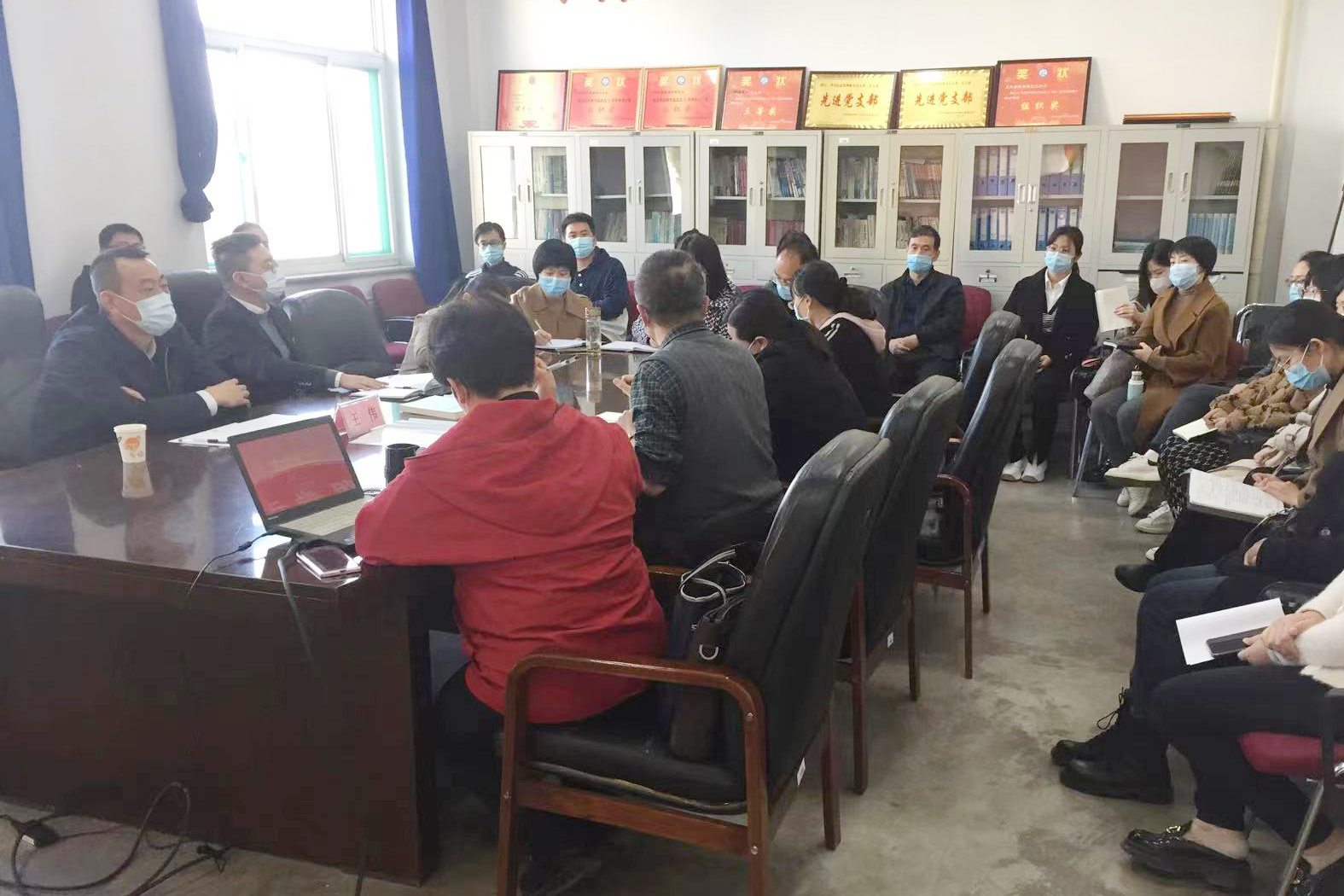 在护理学系,校党委书记闫敬来认真听取部门领导汇报,研究解决联系系部存在的问题,指导系部教育教学、疫情防控和安全工作。闫敬来书记指出,护理学系作为汾阳学院的龙头专业,要认真学习、深入贯彻落实党的二十大精神,切实把思想和行动统一到党的二十大精神上来,继续弘扬百年护理历史文化,擦亮汾阳护理金字招牌,持续巩固拓展全国样板支部成果,以护理学国家一流专业建设为抓手,统筹抓好疫情防控、教学管理等各项工作,强化护理专业特色,打造更多精品课程,打造一流护理教学团队,培养优质护理人才。