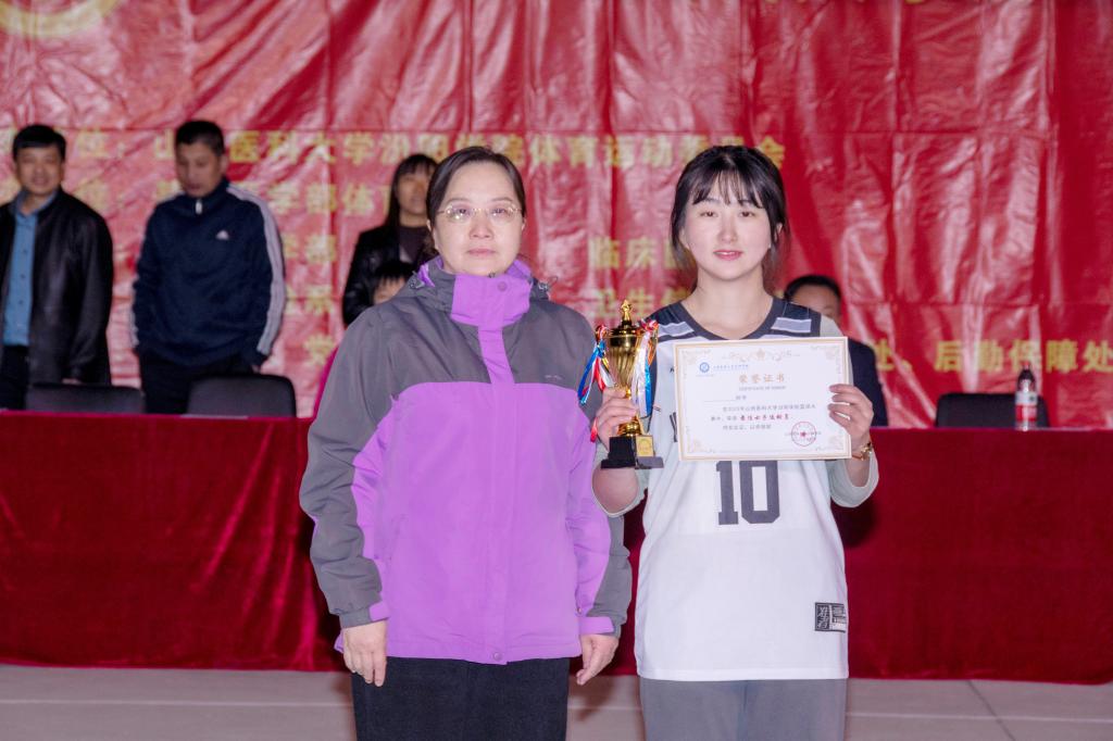 4月6日晚,在男子组临床医学系代表队和护理学系代表队、女子组临床医学系代表队和医学检验系代表队巅峰对决后,临床医学系男子代表队和女子代表队分别获得男子和女子冠军,护理学系代表队和医学检验系代表队分别获得男子和女子亚军,医学检验系代表队和护理学系代表队分别获得男子和女子季军。眼视光学系代表队、基础医学部代表队、卫生信息管理系代表队获得优秀组织奖。临床医学系代表队队员武文杰和陈雪莲分别获得男子、女子最佳运动员。