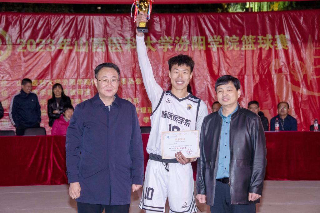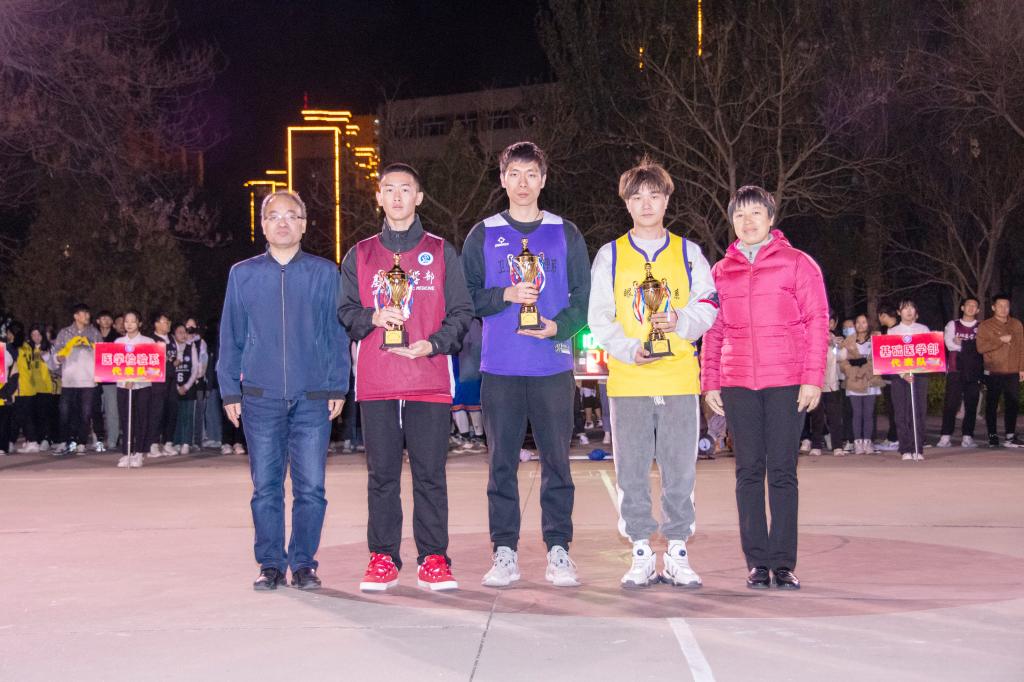 闭幕式上,校体育运动委员会办公室主任、基础医学部主任乔海兵致辞,体育教研室副主任邢月丽宣布了本年度篮球赛比赛结果。出席闭幕式的领导和嘉宾为获奖代表队和个人颁奖。