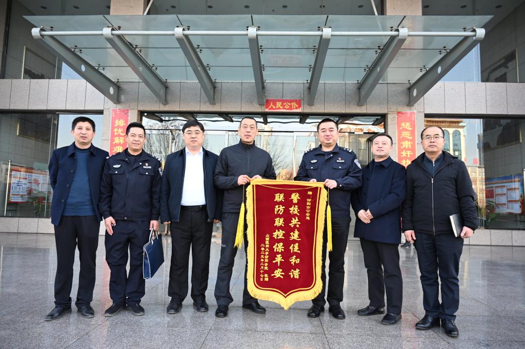 党委副书记王伟代表世界杯官网为汾阳市公安局赠送了“警校共建促和谐、联防联控保平安”的锦旗。
