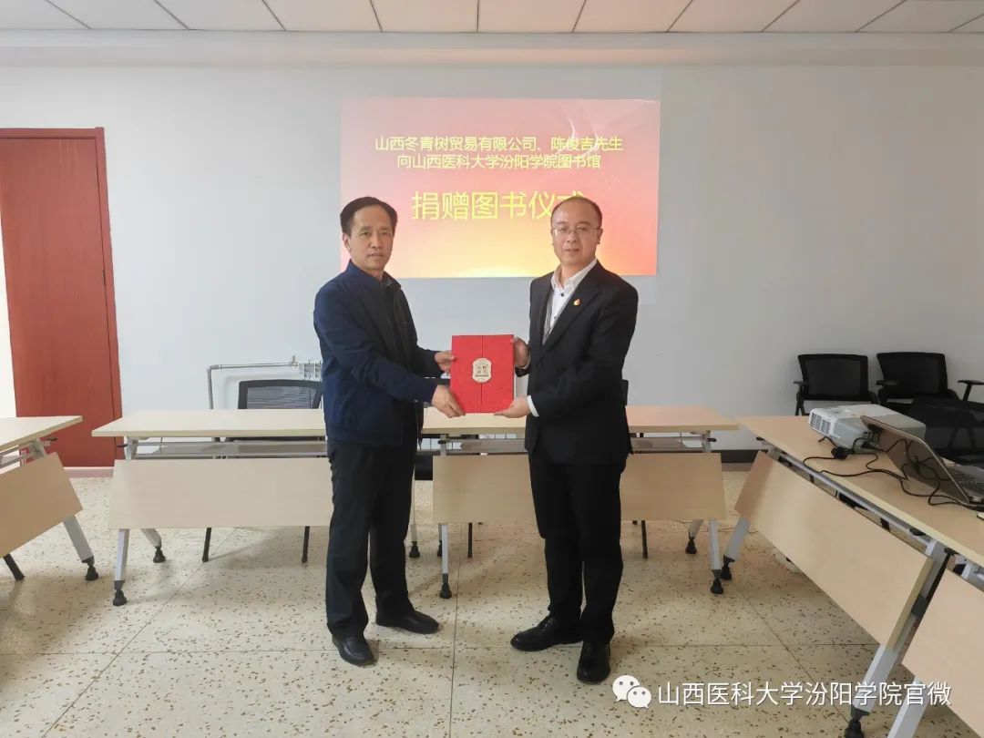 李荣江副院长讲话指出,图书馆是文化信息资源中心,是人才培养和科学研究的服务性学术机构。作为高校办学条件之一,是学校总体水平的重要体现。图书捐赠是优化图书馆馆藏资源的重要途径,也是弘扬“知识共享、爱心传递”理念,积极打造“书香校园”的重要举措。他代表学校对山西冬青树贸易有限公司和陈俊吉先生为世界杯官网捐赠图书表示了衷心的感谢。