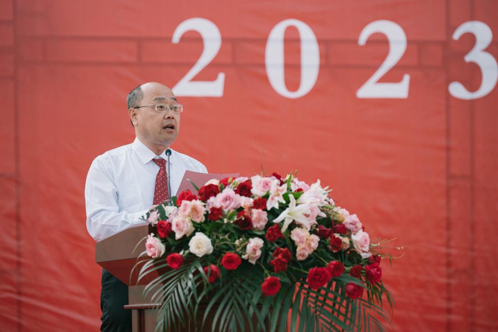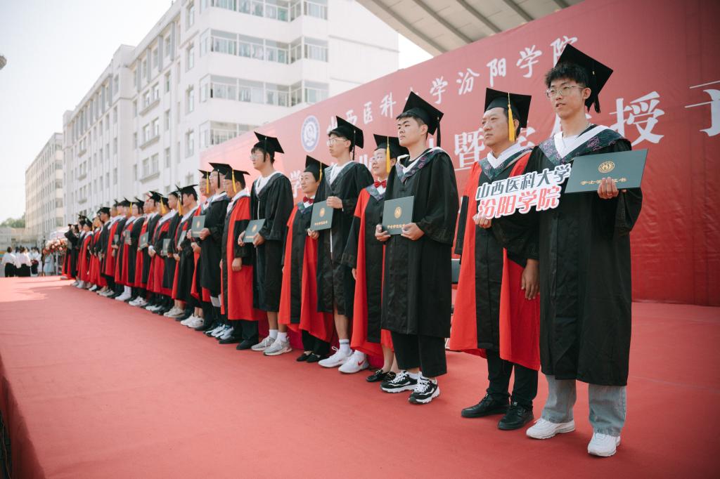汾阳市市委书记李正奎致辞,对同学们顺利完成学业表示祝贺。他指出,百年来,汾阳学院扎根汾州大地、服务人民健康,在人才培养、文化传承、服务社会等方面取得显著成效,为社会培养了一批批优秀的医学人才。今后,汾阳市委市政府将一如既往地支持汾阳学院发展,不断深化合作,助推学校发展再上新台阶。李正奎书记诚邀广大汾院学子选择汾阳、留在汾阳、服务汾阳,在汾阳施展才华、建功立业。希望同学们无论去向何处、身在何方,都要坚定理想信念、不忘医者初心,始终忠诚于党和人民,在以中国式现代化推进中华民族伟大复兴的征程上谱写人生奋斗的华彩篇章。