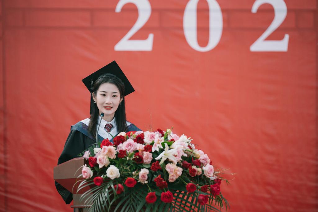 毕业生代表、临床医学系张楠同学发言,表达了对母校的深情祝福与深厚感激之情。在校生代表、护理学系廉冰洁同学发言,表达了对学长学姐的诚挚祝福。教师代表、眼视光学系刘院斌教授深情寄语同学们要牢记校训精神,在医学道路上不忘初心、勇毅前行。