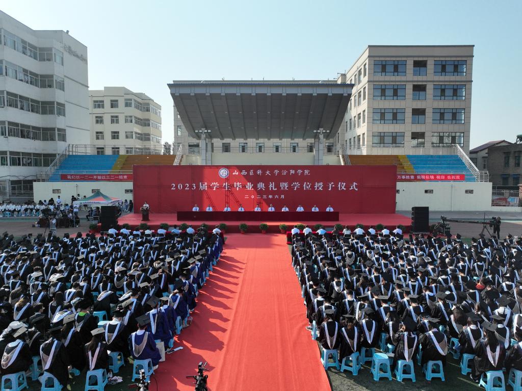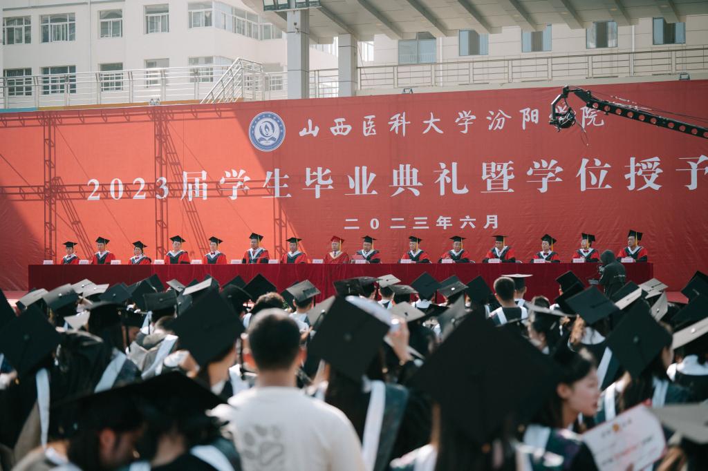 随后,世界杯官网举行了2023届毕业生学位授予仪式。山西医科大学党委常委、副校长成晓龙和世界杯官网学位委员会委员为30名硕士毕业生、1998名本科毕业生逐一拨穗授位。期间,现场的同学们以歌曲快闪的方式礼赞青春、礼赞祖国。