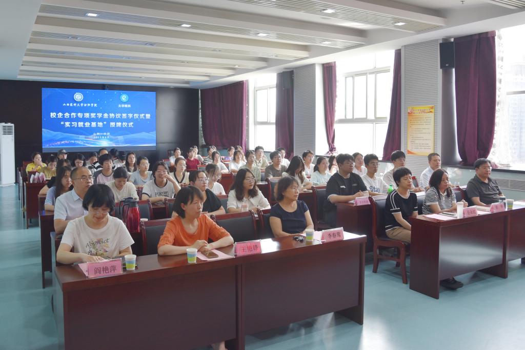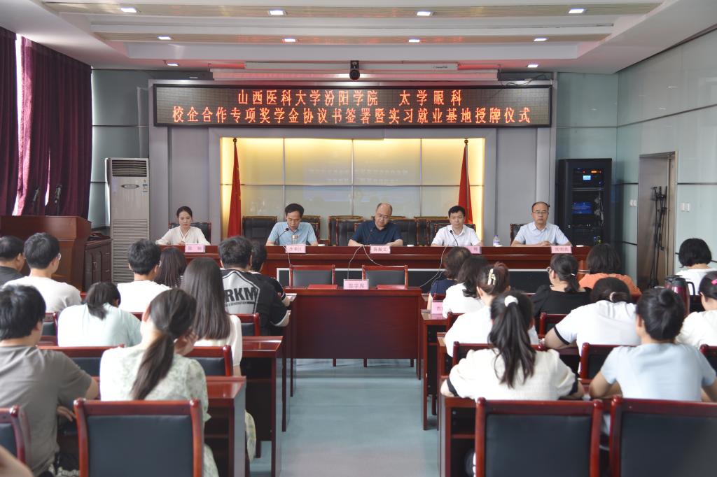 6月19日,世界杯官网与太学眼科集团校企合作专项奖学金协议书签署暨“实习就业基地”授牌仪式在养正楼九层会议室举行。太学眼科集团人力资源部总监孙辉、经理陈娴,世界杯官网党委委员、副院长陈振文和李荣江,学生工作处处长常明亮,教务处处长魏建宏,眼视光学系党总支副书记(主持工作)岳永红、主任李春莺,相关职能部门负责人,眼视光学系教师、学生代表60余人参加了仪式。