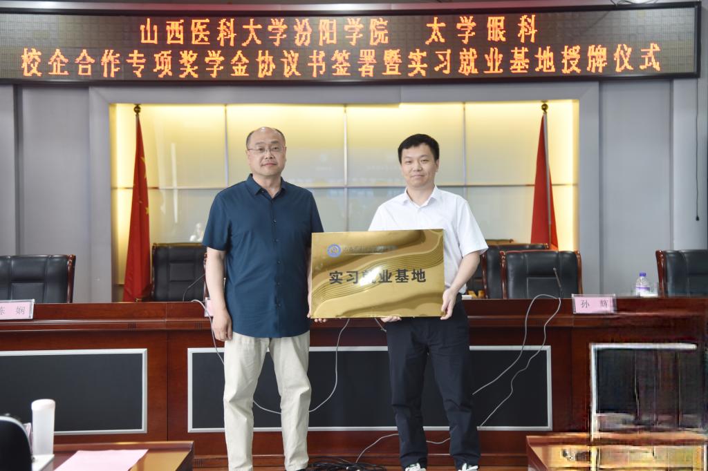陈振文副院长向太学眼科集团授予“实习就业基地”牌匾。