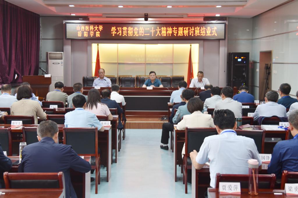结业式上,学生工作部(处)处长常明亮、卫生信息管理系主任宋维芳、临床医学系党总支书记陈利荣、思政部副主任宋泽莲、基础医学部党总支副书记宋艳萍结合自身学习思考和工作实际进行了交流发言,汇报了学习心得体会。大家一致认为,经过集中学习,对习近平新时代中国特色社会主义思想蕴含的真理力量、实践伟力有了更加深刻的感悟,对新时代高等教育的使命担当有了更加深刻的把握,大家将在党的二十大精神感召指引下,对标对表、积极谋划、履职明责、主动作为,为汾阳学院高质量发展贡献最大力量。