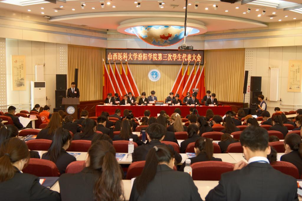 大会听取了校学生会执行主席杨创博作的题为《燃亮青春之火 谱写时代华章》的工作报告,报告总结了校学生会过去一年的主要工作与取得的成绩。大会审议并通过《山西医科大学汾阳学院第三次学生代表大会提案工作报告》、《山西医科大学汾阳学院学生会章程》。大会选举产生了山西医科大学汾阳学院新一届学生会主席团及委员会成员。在第二届主席团成员毕紫凝的主持下,大会通过关于第二届学生会工作报告决议。