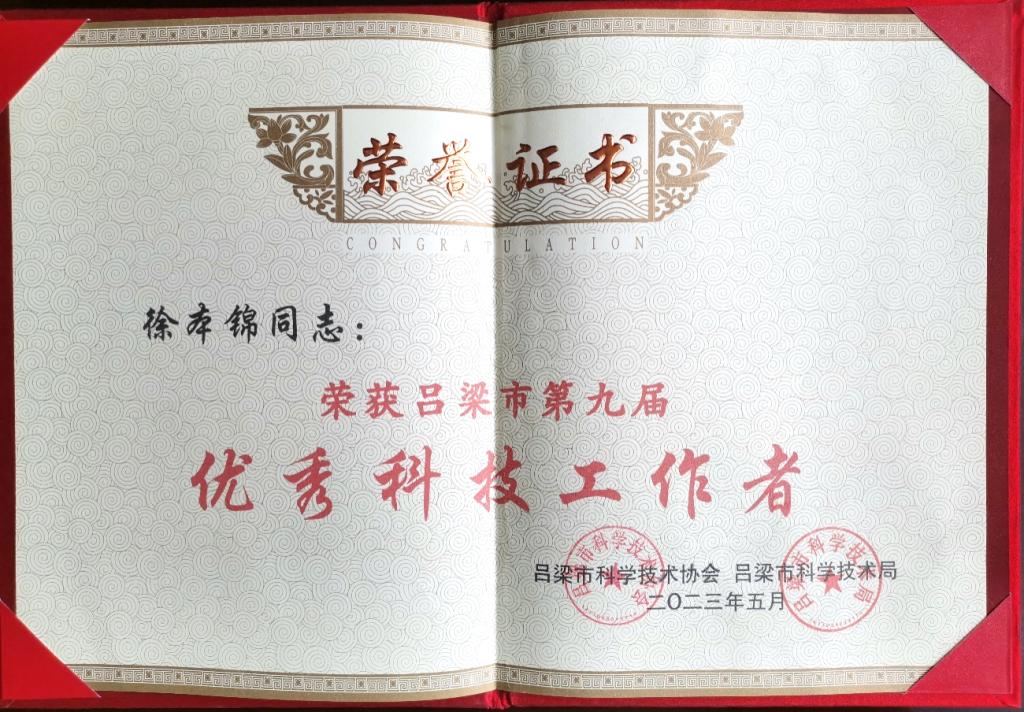 世界杯官网医学检验系教师徐本锦博士荣获“吕梁市第九届优秀科技工作者”荣誉称号