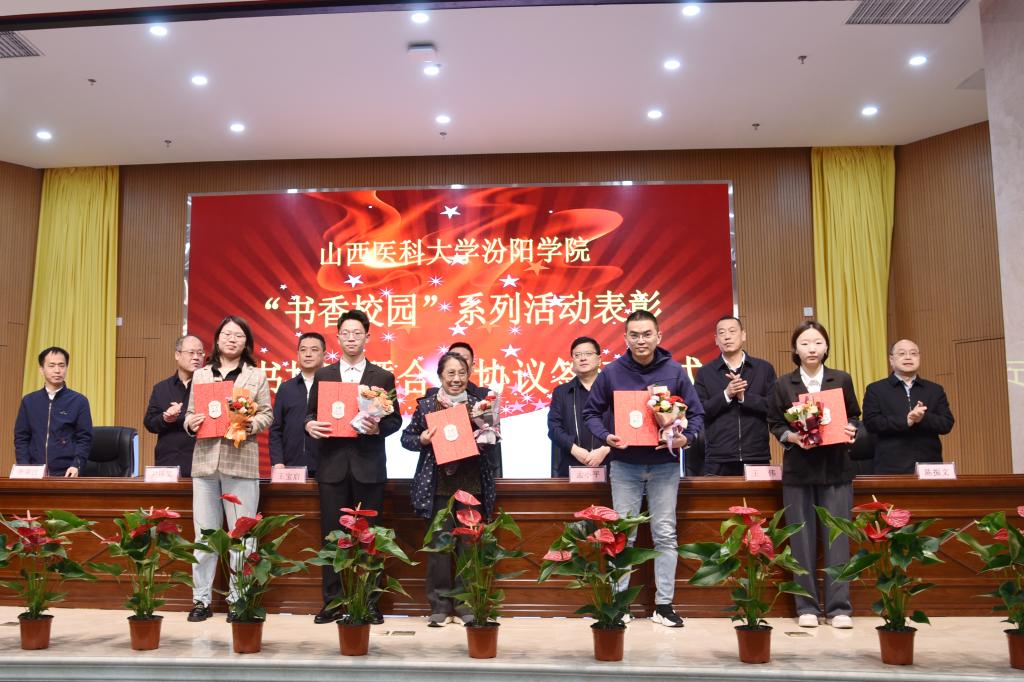 校图书馆馆长任玲艳代表学校与汾阳市图书馆馆长姜幼平签署了战略合作协议。