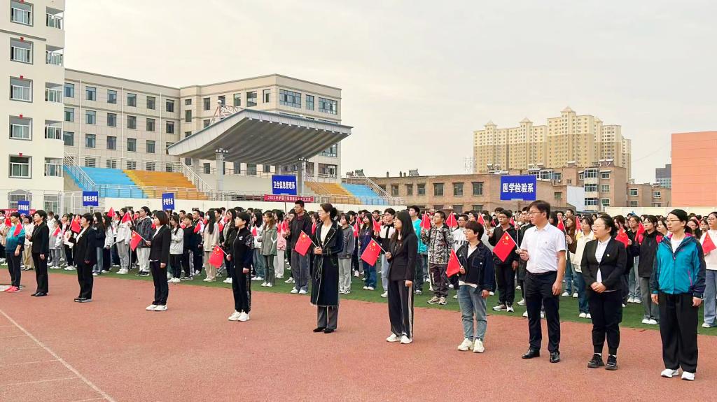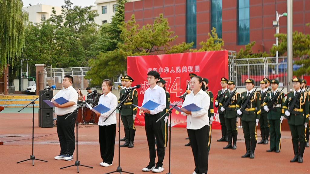 五星红旗高高飘扬。来自校大学生艺术团的四位同学进行了主题为《以汾院青春,谱写国旗礼赞》的配乐诗朗诵。同学们“请党放心,强国有我”的铮铮誓言在操场上空久久回荡。