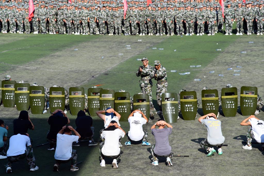 2023级各参训连队学生英姿飒爽、军容严整、精神振奋,迈着整齐的步伐、喊着嘹亮的口号走过主席台。方队代表进行了军体拳、擒敌拳、匕首操、应急棍、队列会操、反恐防爆、持枪战术等,充分展现了2023级新生朝气蓬勃、积极向上的精神风貌,赢得了现场师生的阵阵掌声。