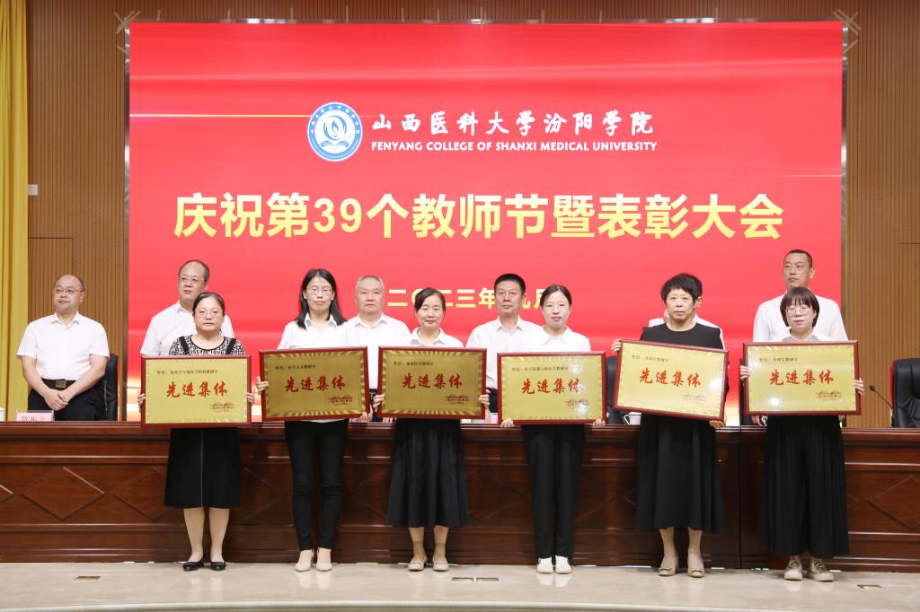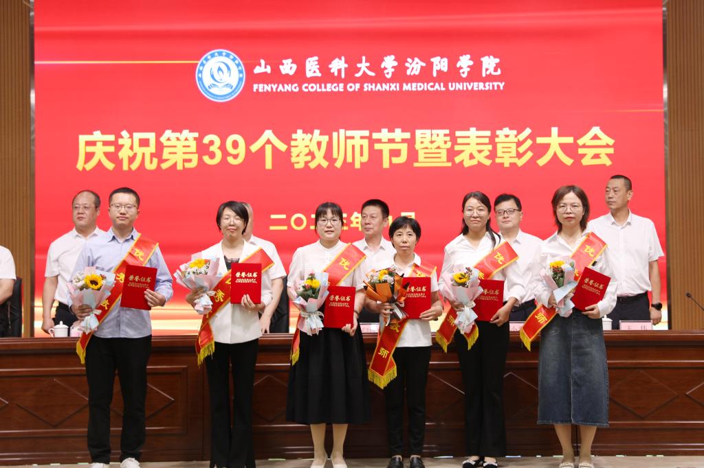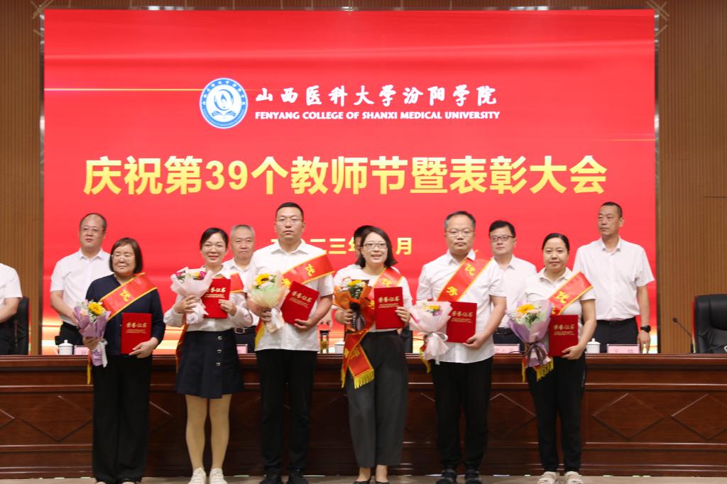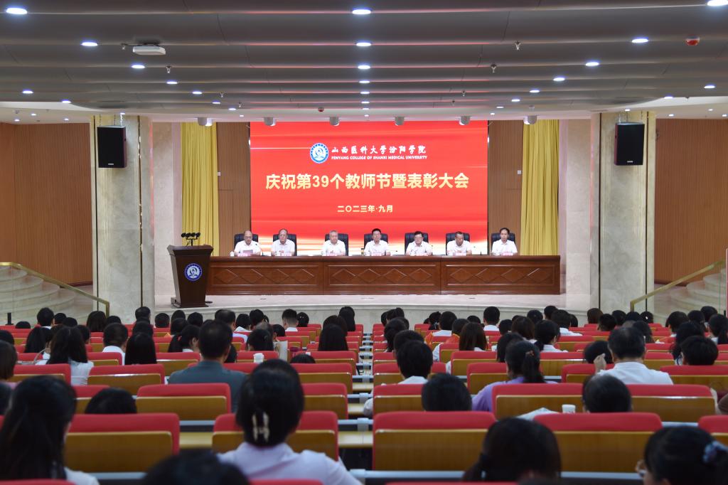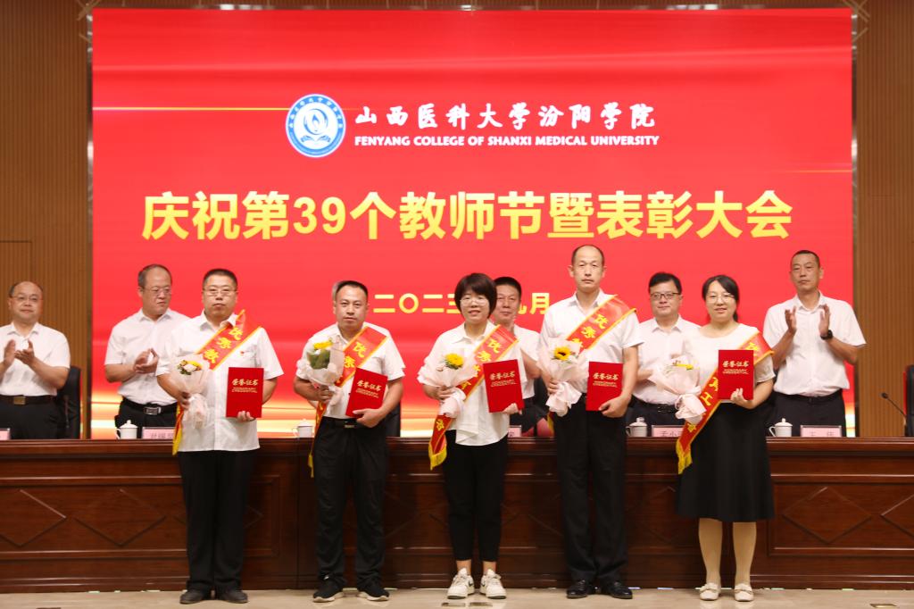 9月7日下午,在第39个教师节来临之际,世界杯官网在图书馆隆重举行庆祝第39个教师节暨表彰大会。大会以“躬耕教坛,强国有我”为主题,表彰过去一年在教育教学工作中表现突出的先进集体和优秀个人。党委书记闫敬来,党委副书记、院长孟小平,山西省汾阳医院党委书记郭任维,党委副书记王伟,党委委员、纪委书记尹锡昊,党委委员、副院长陈振文和李荣江及学校中层干部、副高职称及以上人员、教研室(实验室)主任、新入职教职工、获奖人员及获奖集体代表参加了会议。党委委员、副院长陈振文主持了会议。