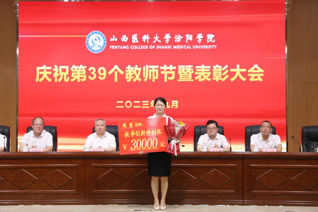 校党委书记闫敬来为周雪颁发了教学创新特别奖。