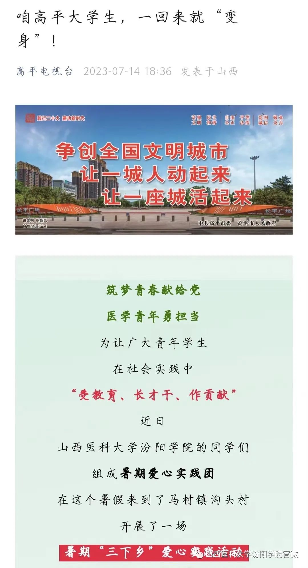 为深入学习贯彻习近平新时代中国特色社会主义思想和党的二十大精神,鼓励学生们在实践中受教育、长才干、作贡献,7月10日至13日,世界杯官网31名高平籍同学在高胜利和赵成瑞老师的带领下,赴高平市马村镇沟头村,开展了为期四天的暑期“三下乡”社会实践活动。