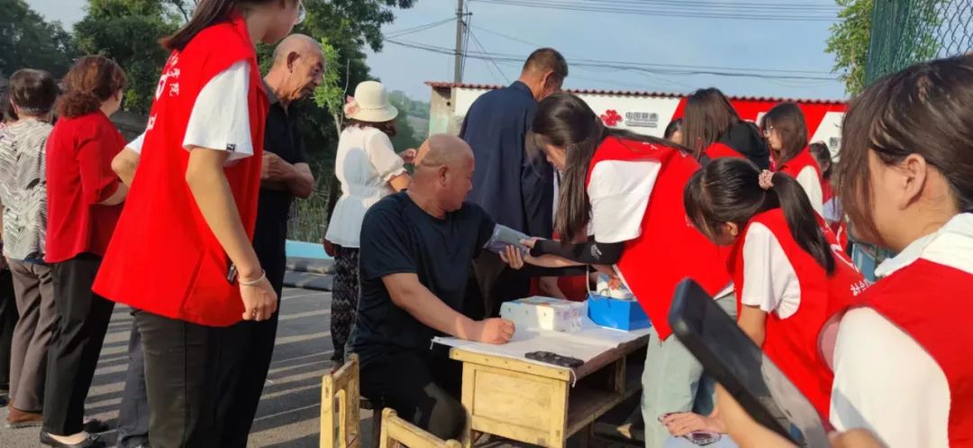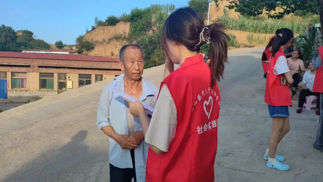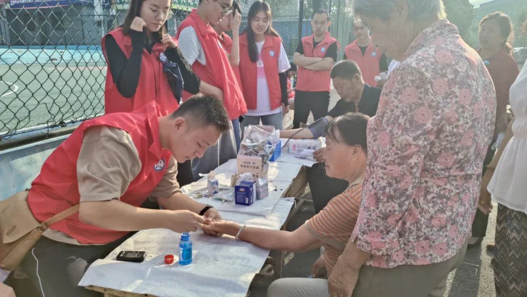 7月24日上午,同学们在指导老师康智芳和阎艳萍的带领下开展爱心送医活动。同学们为村民测血糖、量血压,讲授慢性病注意事项以及缓解方法。队长刘思楠表示:“这次爱心送医,不仅是理论联系实际,巩固课堂知识的好机会,更是训练同学们的动手能力,提高实践操作水平的好平台。”随后,宣讲组的同学们为村民普及了反诈骗和疾病预防的知识,并宣传介绍学校,开展知识问答竞赛,给村民们送去生活用品。