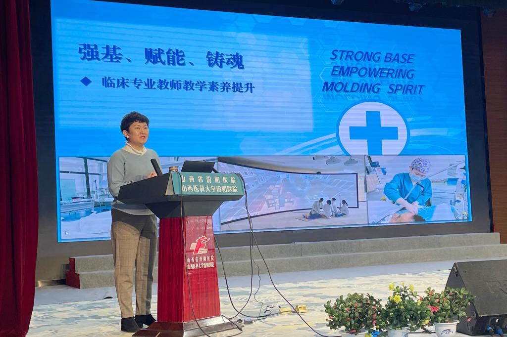 培训会上,山西医科大学护理学院副教授郑洁老师应邀作了题为“强基、赋能、铸魂——临床专业教师教学素养提升”的讲座。郑洁老师详细阐述了如何培养医疗卫生卓越人才,并从自己多年担任教学比赛评委的角度出发,对课堂教学设计、课堂讲授注意事项和课前教学准备等方面进行了讲解并提出建议。世界杯官网基础医学部生理教研室祁文秀教授介绍了自身的教学成果和课堂经历,分享了近年来参与教案设计大赛的经验。世界杯官网青年教师教学基本功竞赛一等奖获得者临床医学系口腔医学教研室蔡岫颖老师进行了示范教学。