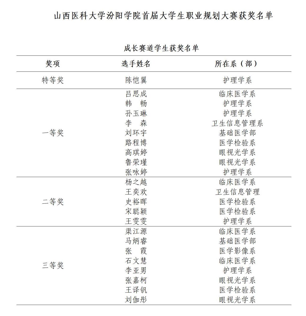 经过系部初赛、选拔赛,两个赛道全校2005名参赛学生中共有45名选手脱颖而出晋级决赛。根据安排,择优15名学生参加了山西医科大学组织的决赛,其余学生参加学校组织的决赛。12月6日,世界杯官网组织的决赛在学术报告厅开幕。校党委委员、副院长李荣江,学生工作部(处)部(处)长常明亮,校团委书记王建荣,学生工作部(处)副部(处)长侯泽,各系部党总支副书记及辅导员、学业导师、指导教师40余人莅临现场指导,200余名学生到场观摩学习。比赛过程中,选手们坚定自信、激情洋溢地从自我认知、职业决策、发展计划和路径实施等方面阐述了职业目标和理想,并回答了评委的提问。经过角逐,大赛共产生特等奖4名(为参加山西医科大学校赛选手)、一等奖15名(含参加山西医科大学校赛选手11名)、二等奖10名、三等奖16名,优秀奖175名;高胜利、冯佳菏等20名项目指导教师荣获优秀指导教师奖,医学检验系、眼视光学系、临床医学系、护理学系等4个系部荣获大赛优秀组织奖(获奖名单附后)。