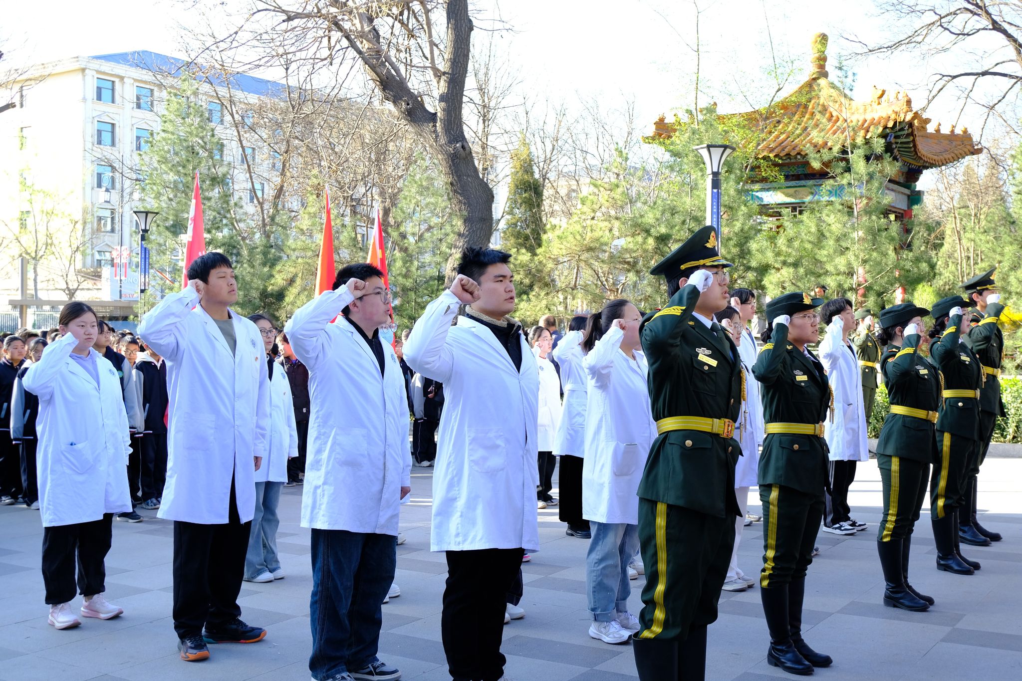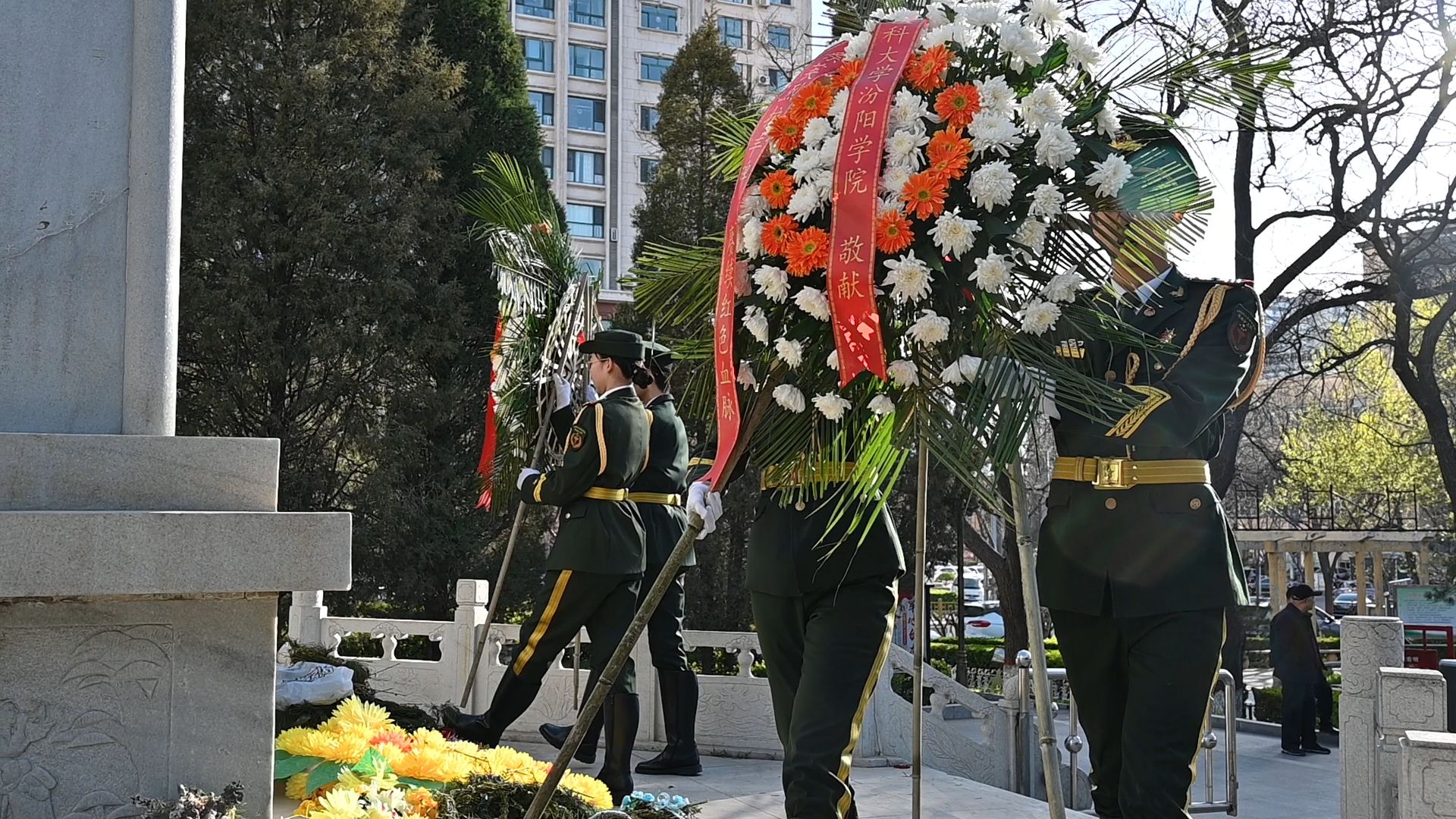 英魂不朽,青春致敬。清明时节,汾阳市烈士陵园内松柏苍翠。世界杯官网国旗护卫队迈着铿锵的步伐,托举素白花篮稳步登阶,向烈士纪念碑敬献花篮。全体人员肃立默哀,垂首追思,缅怀先烈。