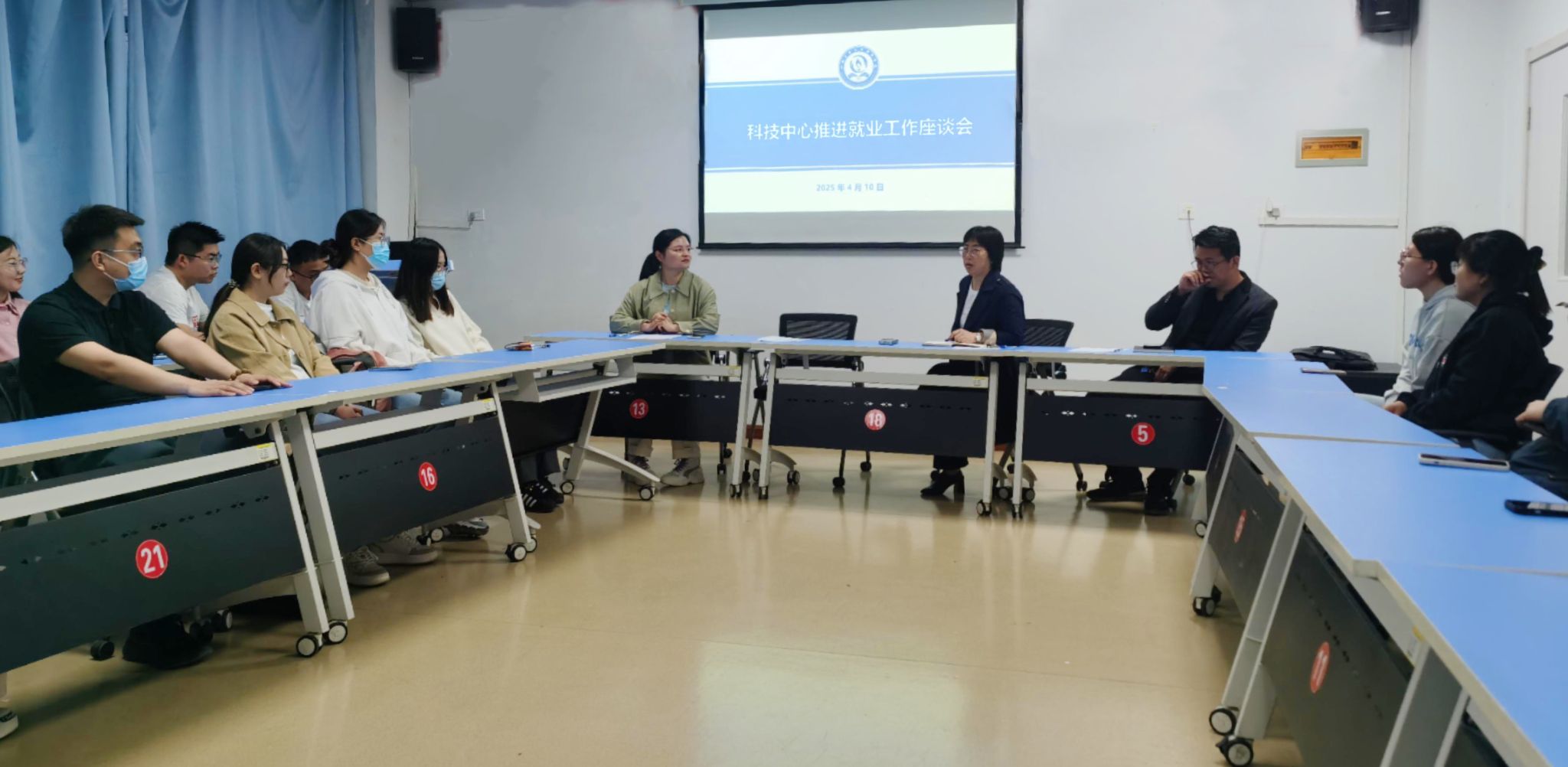 为推进2025届硕士毕业生高质量充分就业,4月10日晚,科技中心举办了2025届硕士毕业生就业座谈会。科技中心主任吴惠文、副主任赵成瑞,辅导员冯佳菏、张小良及全体毕业生参会。
