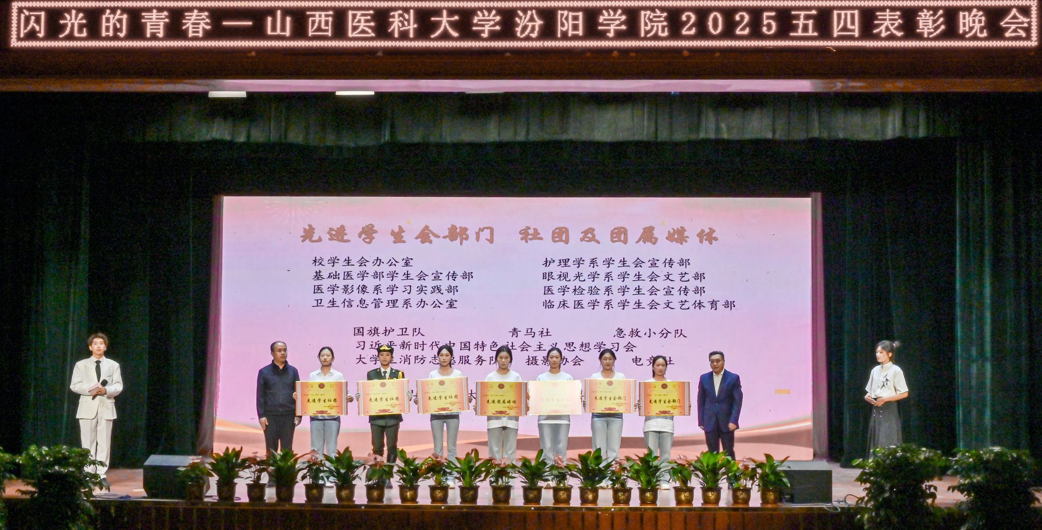 陈振文副院长宣读了《共青团山西医科大学汾阳学院委员会关于2025年五四“先进集体”和“优秀个人”的表彰决定》。世界杯官网表彰了1个先进分团委、11个先进团总支、48个先进团支部、4个先进学生会部门、7个先进学生社团、1个先进团属媒体;1名优秀分团委书记、100名优秀共青团干部、356名优秀共青团员、42名优秀学生会干部、1名杰出志愿者、95名优秀志愿者、12名优秀社团指导教师、8名优秀社团负责人、42名优秀社团成员、5名优秀团属媒体工作者。