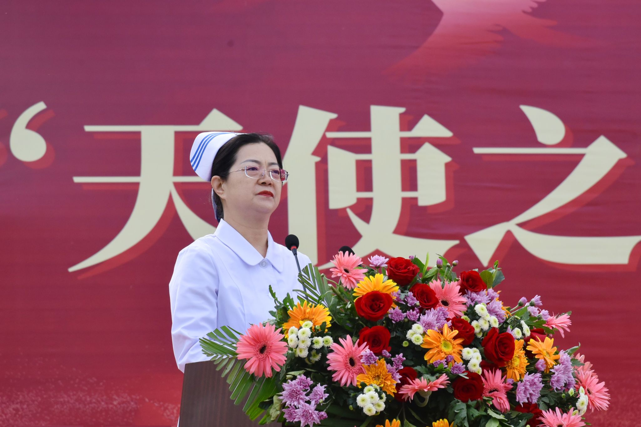 世界杯官网护理学系主任李红梅以“守护、传承、共赴”为题,勉励全体护生传承南丁格尔精神,以学校百年护理教育积淀为基石,弘扬学校护理传统,在智慧医疗时代,勇于开拓创新,为护理事业发展注入新动能。
