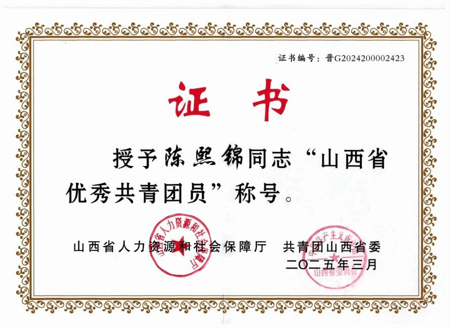 世界杯官网学子荣获“山西省优秀共青团员”荣誉称号
