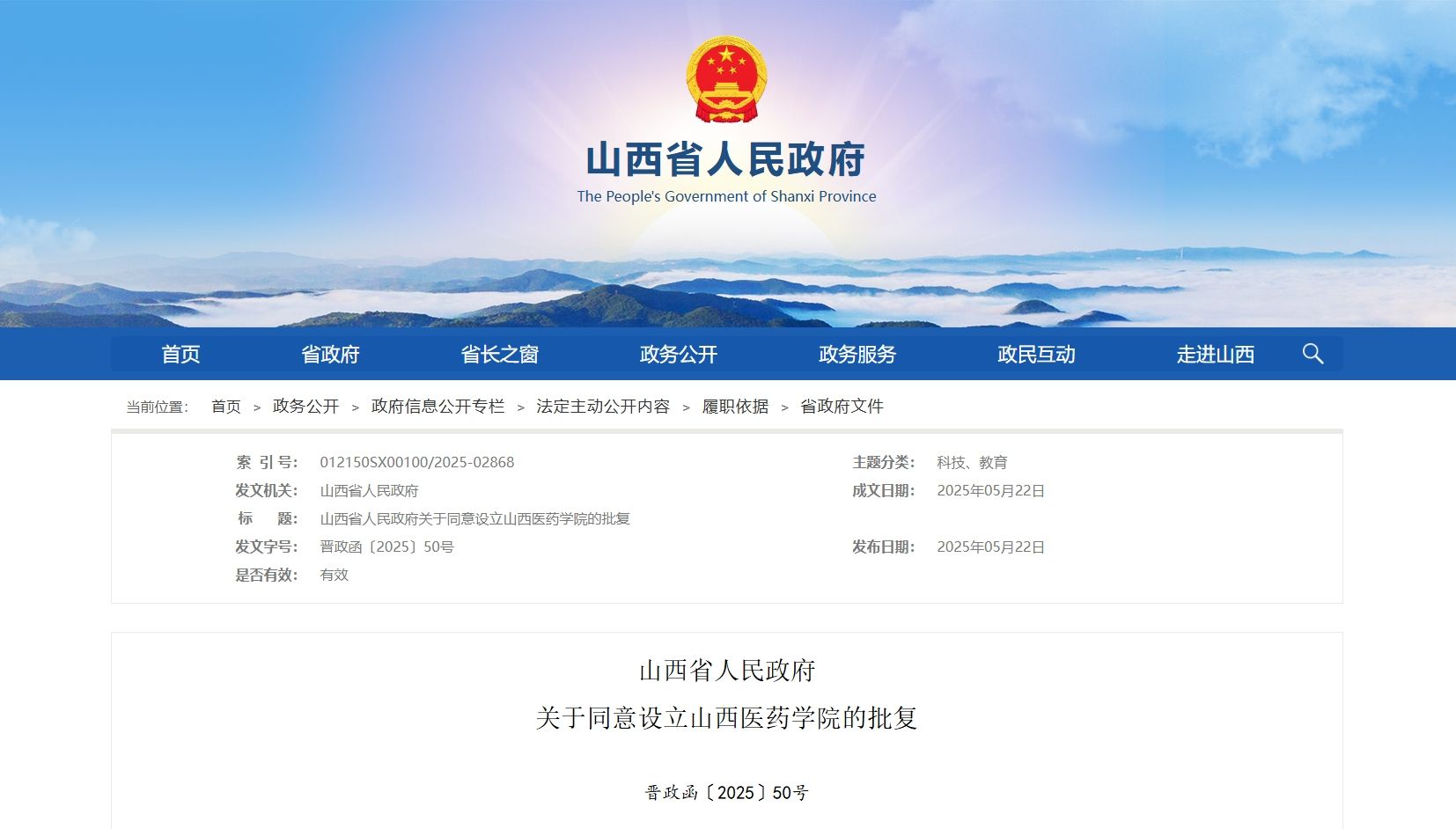 5月22日,山西省人民政府网站发布《山西省人民政府关于同意设立2026世界杯官方合作网站的批复》(晋政函〔2025〕50号),同意设立2026世界杯官方合作网站。