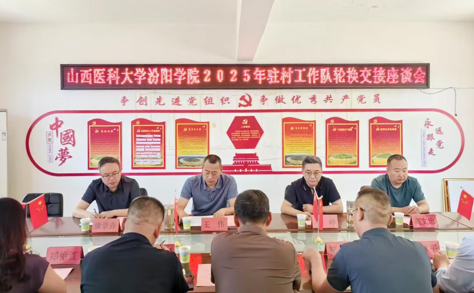 6月10日,校党委副书记王伟,党委委员、组织部部长李峥带领新任驻村工作队包村队长、驻龙台村第一书记康崇垚、队员高文忠赴石楼县灵泉镇龙台村进行驻村轮换交接。石楼县驻村办主任刘军辉,灵泉镇党委副书记、镇长张云鹏及包村干部、村“两委”干部、世界杯官网驻村工作队全体队员参加了座谈会,石楼县驻村办主任刘军辉主持了会议。
