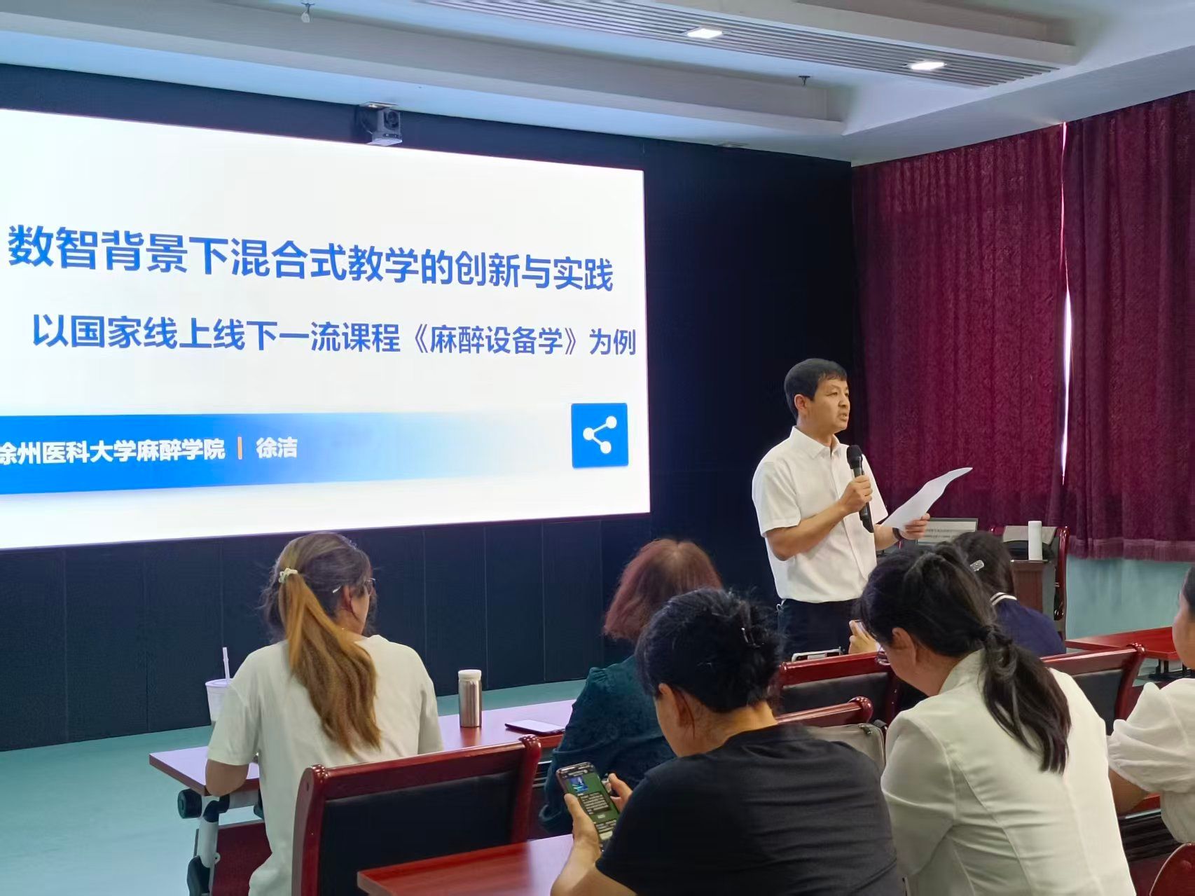 为深入推进教育数字化转型,切实提升世界杯官网教师数智化教学能力与实践水平,9月12日下午,世界杯官网教师发展中心联合临床医学系特邀徐州医科大学麻醉学院徐洁教授,以国家级线上线下一流课程《麻醉设备学》为实践样本,开展“数智背景下混合式教学的创新与实践”专题讲座。教师发展中心副主任陈利荣主持,校内80余名教师听取讲座。