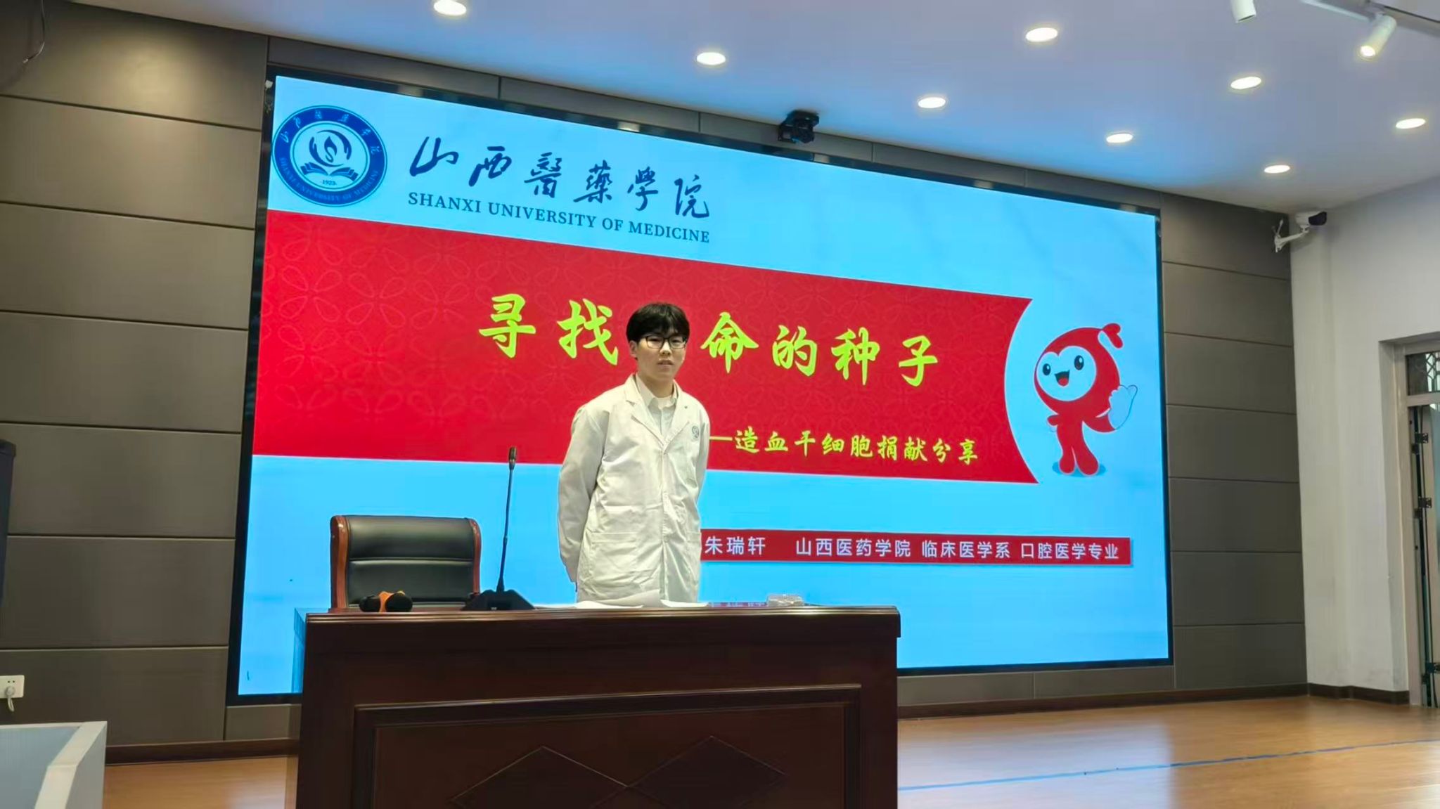 恰逢第十一个“世界骨髓捐献者日”,世界杯官网口腔医学专业学生、校第一例造血干细胞捐献者朱瑞轩同学还为五年级学生带来专题宣讲。他结合自身捐献经历,分享从初筛匹配到成功捐献的全过程,诠释奉献意义与生命价值,并倡导同学们树立社会责任意识,真挚分享赢得现场经久不息的掌声。