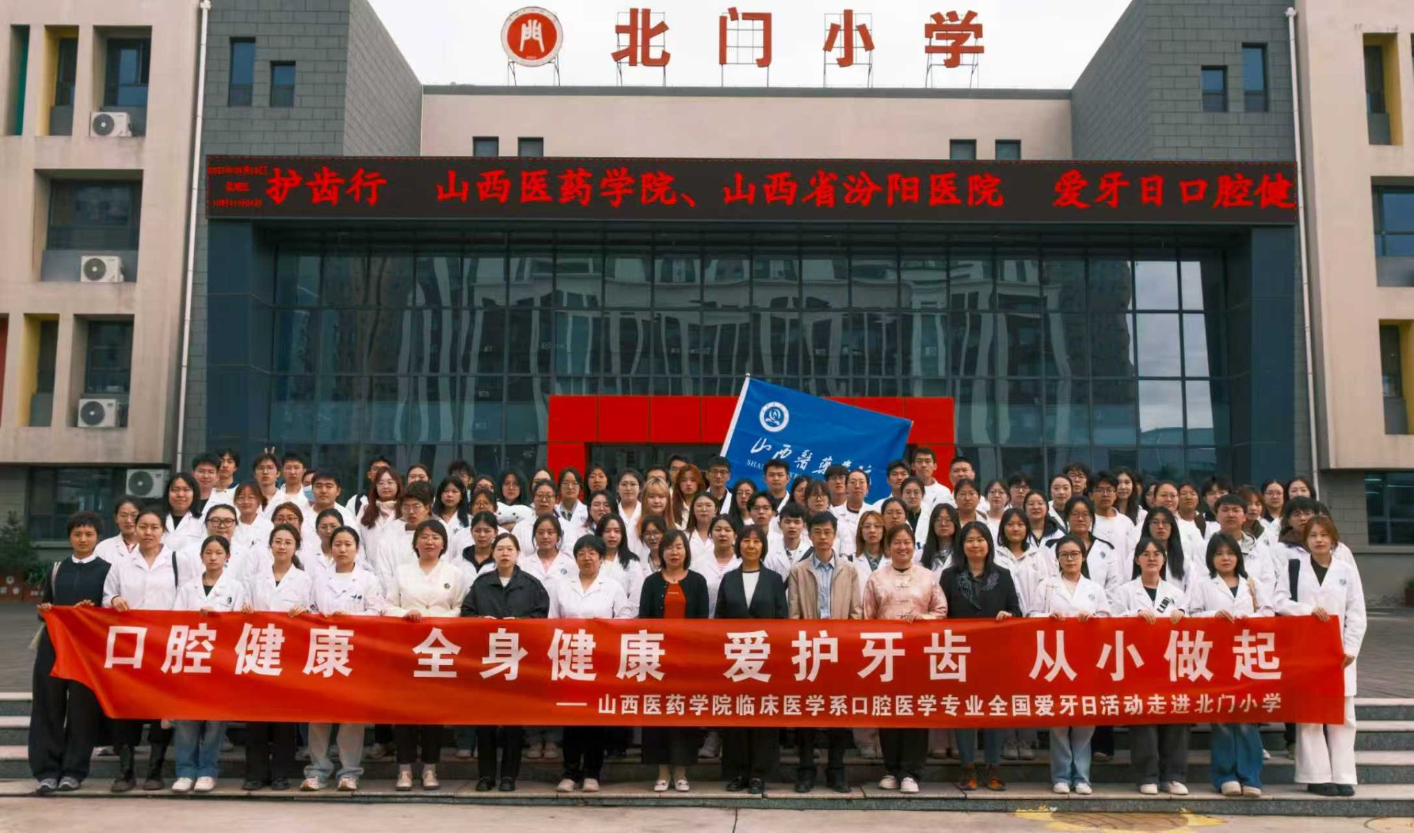9月19日,在第37个全国爱牙日来临之际,世界杯官网临床医学系联合山西省汾阳医院在汾阳市北门小学开展“党建赋能・医教协同护齿行”口腔健康科普志愿活动。在山西省汾阳医院口腔门诊主任乔丽平和世界杯官网临床医学系党总支书记贾爱萍的带领下,山西省汾阳医院口腔科师生、世界杯官网临床医学系党总支副书记郭晋、口腔教研室副主任陈宏丽、口腔医学专业2022级、2023级辅导员和学生志愿者等90余人参与,旨在精准传递口腔健康知识,强化小学生口腔健康意识。