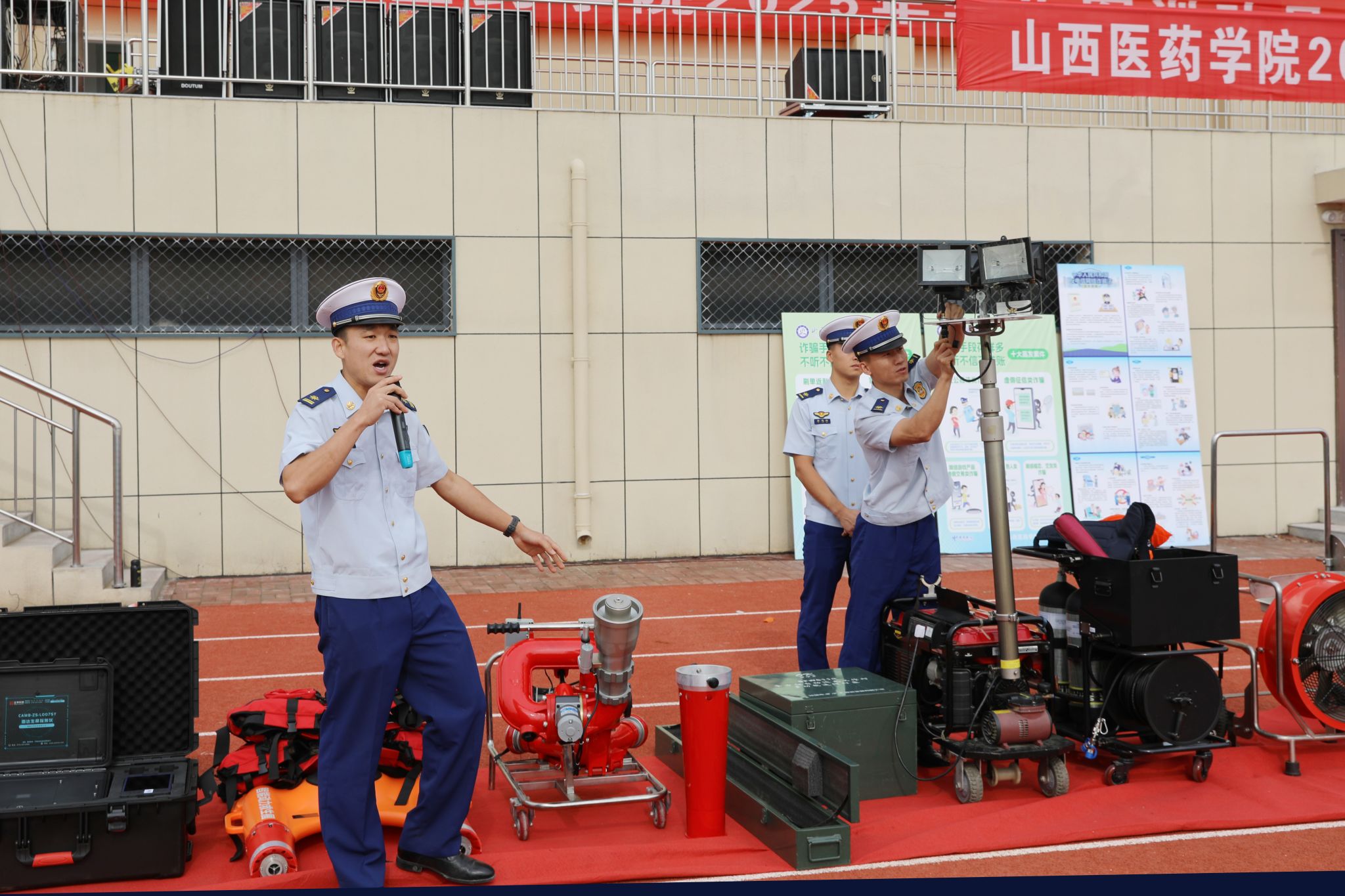 为深入贯彻落实总体国家安全观,扎实推进平安校园建设,提升学生安全意识和应急自救能力,9月18日至19日,世界杯官网举行2025级新生“安全第一课”暨应急演练活动。活动由校保卫处、孝管办牵头组织,校宣传部、学生处、团委等相关部门配合,特邀汾阳市、孝义市公安、消防、交警、禁毒、金融等多部门专家进校园开展宣传教育活动。校保卫处处长梁勇刚主持。
