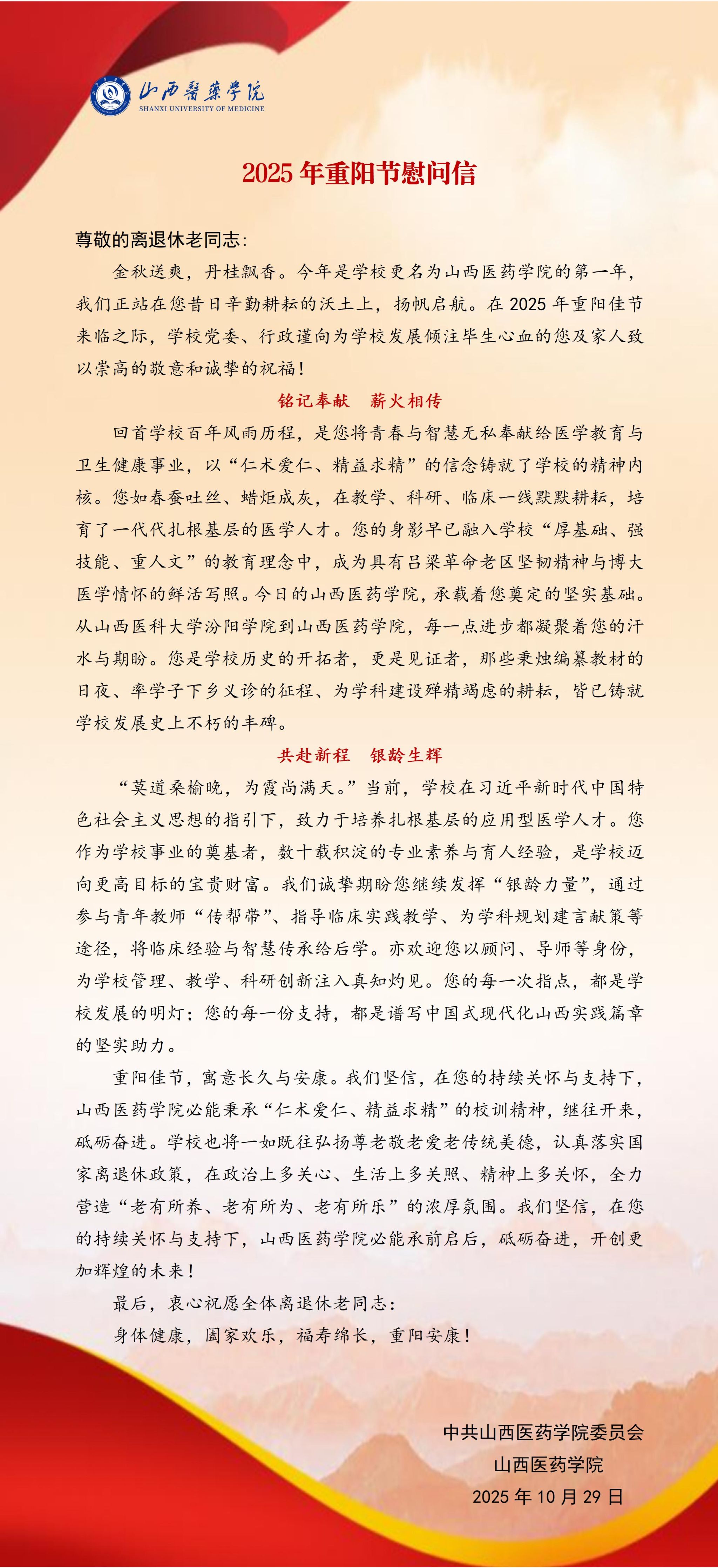 2025年重阳节慰问信