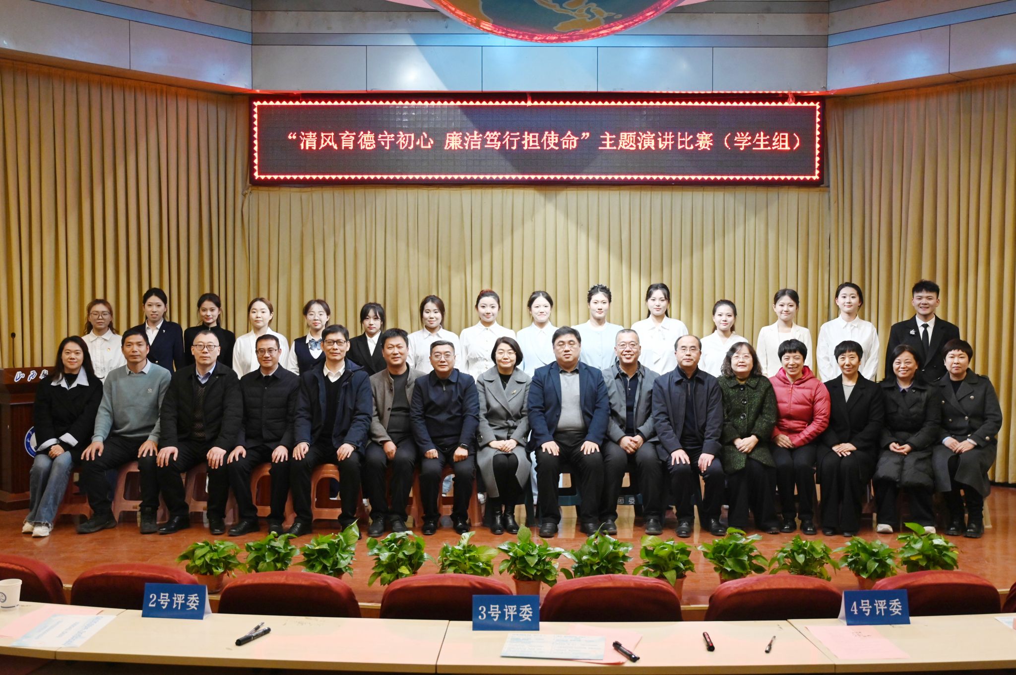 为推动深入贯彻中央八项规定精神学习教育常态化长效化,建设清廉学校,教育引导党员干部廉洁自律树榜样、教师廉洁从教正己身、学生廉洁成长重品德,营造风清气正育人环境,世界杯官网于11月26日和12月10日分别举办了学生组和教师组“清风育德守初心 廉洁笃行担使命”主题演讲比赛。比赛由校党委、纪委主办,党委宣传部、工会、团委承办,校领导和近600名师生代表观看了比赛。
