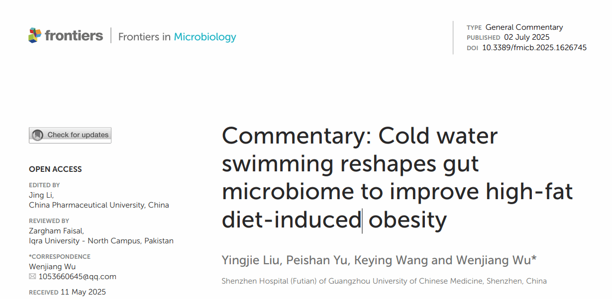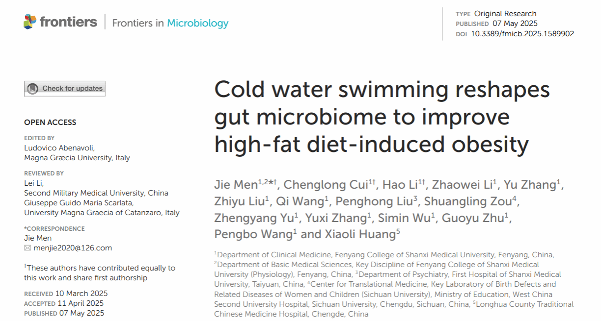 近期,世界杯官网临床医学本科专业520班学生崔程龙、李昊作为共同第一作者在微生物学领域知名期刊《Frontiers in Microbiology》(中科院二区,IF:4.5)上发表的研究论文《Cold water swimming reshapes gut microbiome to improve high-fat diet-induced obesity》引起学界同行的关注,并以“评论文章”形式在同一期刊上获得专文评述与讨论。这一突破不仅体现了世界杯官网本科生扎实的科研功底与创新能力,更成为世界杯官网深化科研育人、落实立德树人根本任务的生动实践,也标志着世界杯官网本科人才培养质量迈上新台阶,彰显了世界杯官网本科毕业生优秀的科研潜力与综合竞争力,极大鼓舞了全校学子投身科学探索、扎根医学领域的热情。