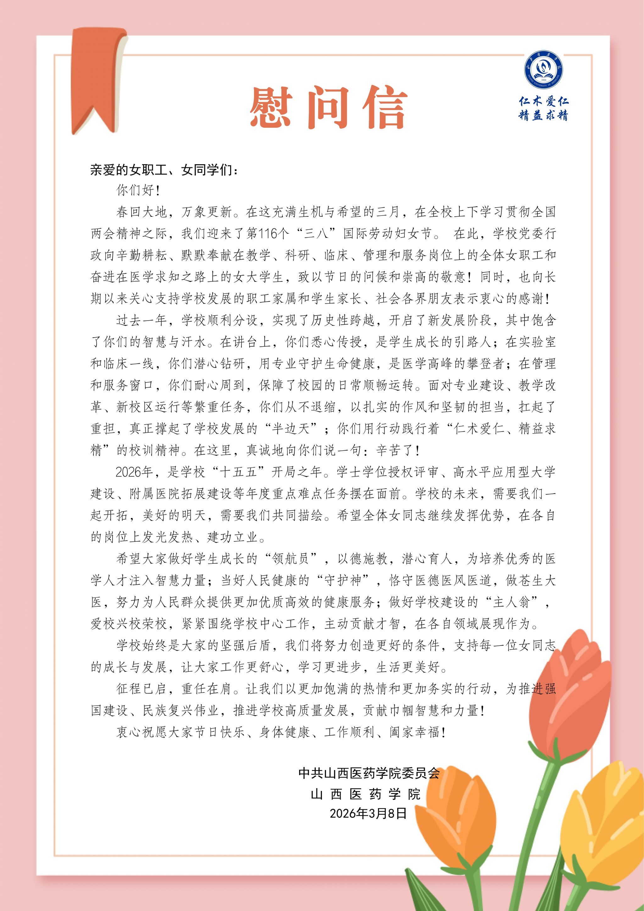 致全校女职工、女同学的慰问信