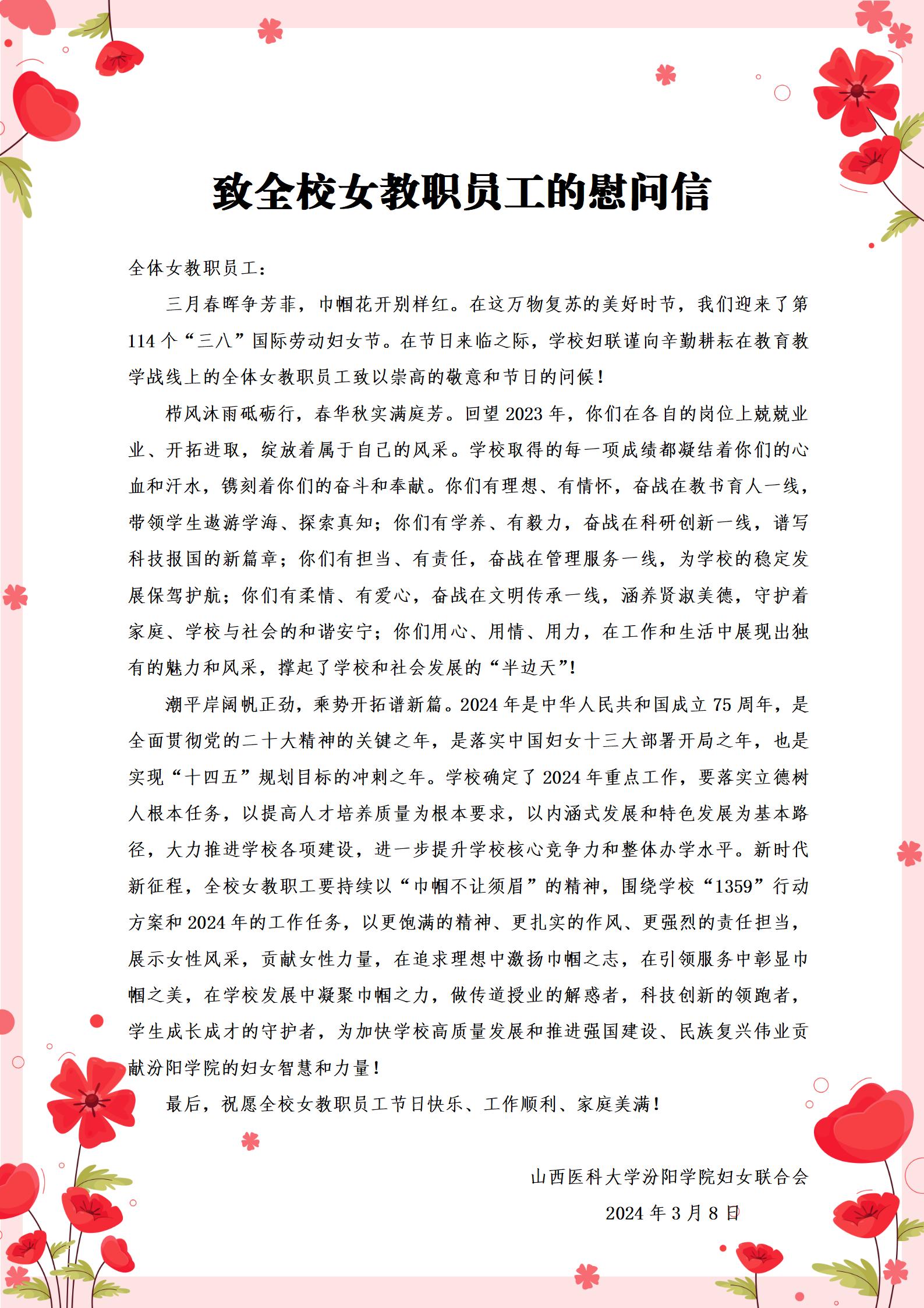 致全校女教职员工的慰问信