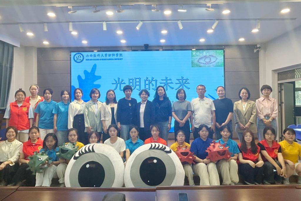 为深入学习贯彻习近平总书记关于儿童青少年近视防控工作系列重要指示批示精神,持续开展好“我为群众办实事”实践活动,发挥专业优势,履行社会责任,6月5日上午,在眼视光学系党总支书记岳永红、主任李春莺的带领下,眼视光学系师生走进汾阳市北门小学开展“6·6”全国“爱眼日”主题活动。北门小学一、二年级100余名小学生参加了活动。