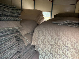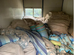 该批物品具体数量为:被罩床单枕套枕巾250余套、被子床垫褥子枕头各350余件、脸盆暖壶200余个。物品状况如下图(可联系现场看货):