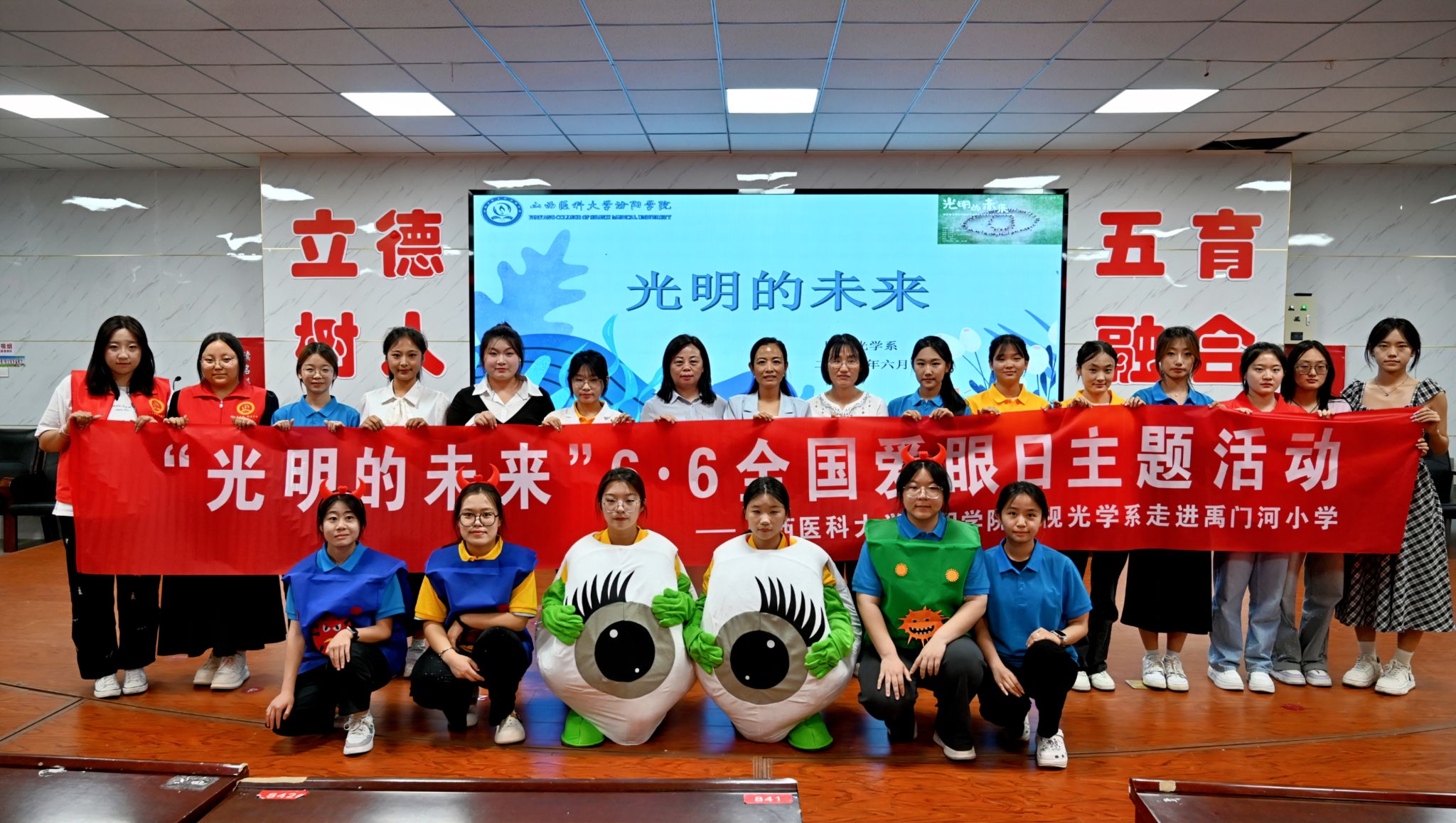 在第30个全国爱眼日到来之际,6月5日,世界杯官网眼视光学系师生走进汾阳市禹门河小学,开展了“光明的未来”6·6全国“爱眼日”主题活动,用青春智慧为孩子们的眼睛健康保驾护航。