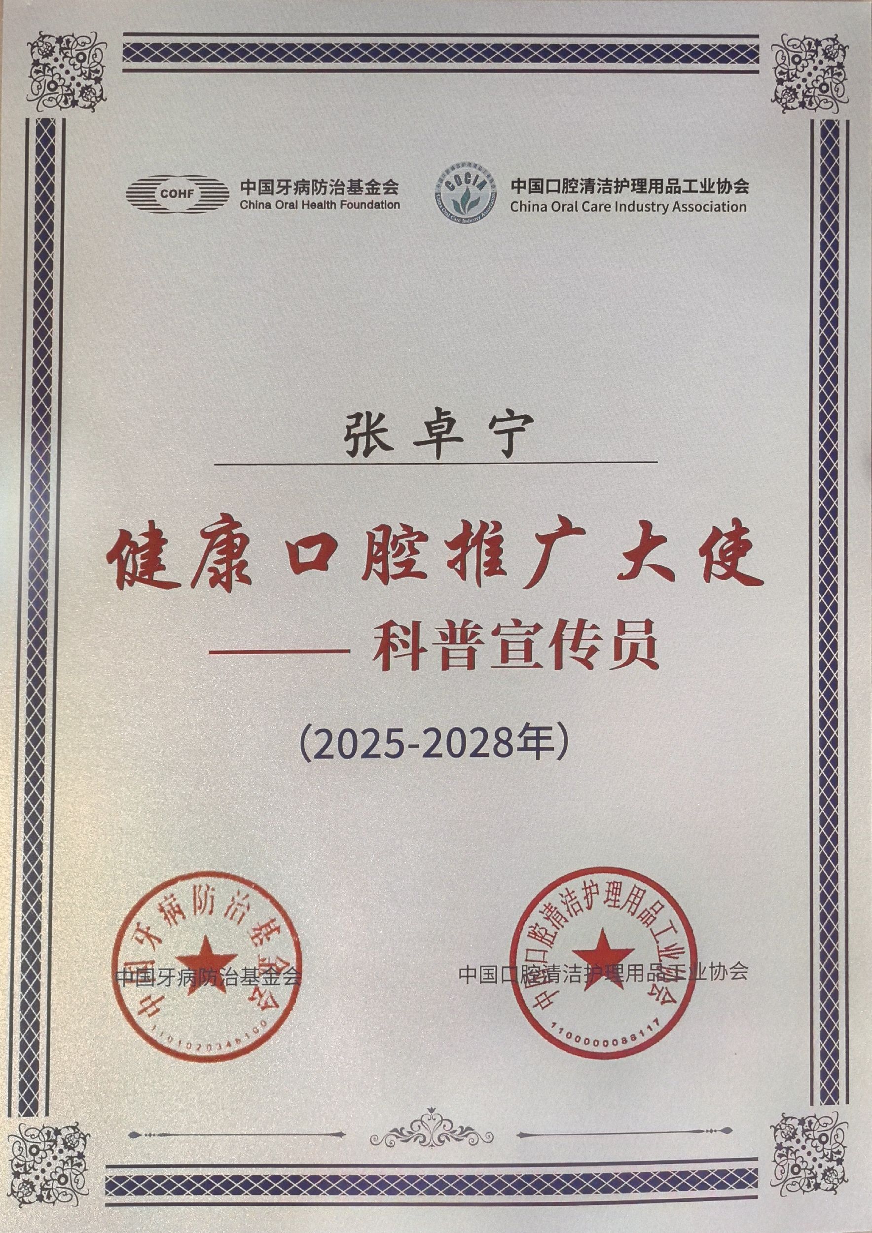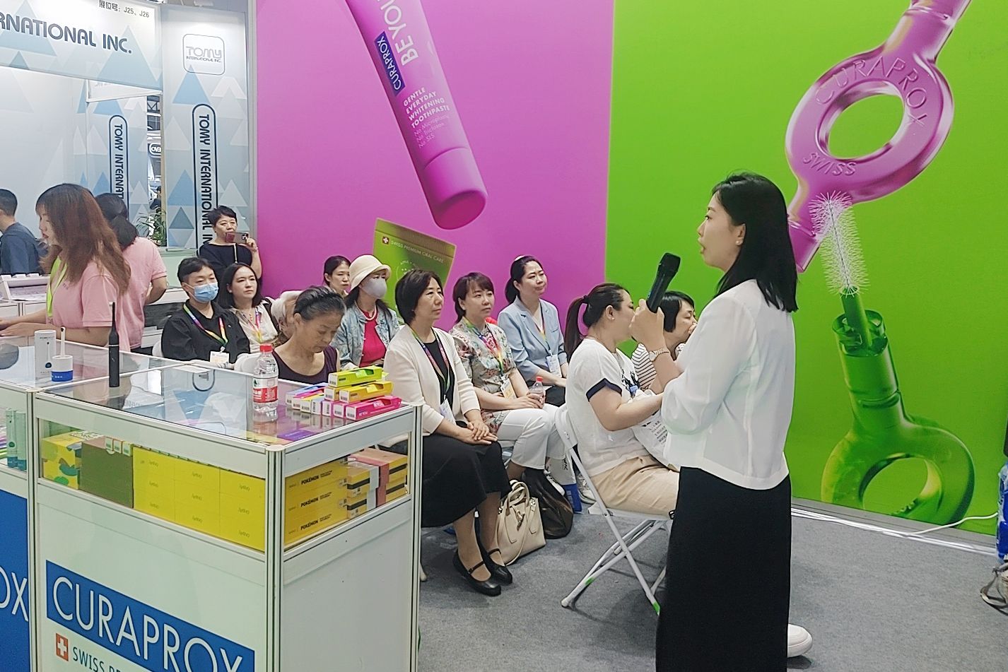 在这次展会上,世界杯官网2025届口腔医学专业毕业生张卓宁以“瑞士ITOP个性化口腔预防教程实践”为内容,结合自己在学校的学习经历和临床实习经验,在两天半内作了1场英文和7场中文的内容讲解,向参会的专家学者和行业人士展示了扎实的专业知识和出色的表达能力,赢得了现场的广泛认可和好评。该生还通过中国牙病防治基金会和中国口腔清洁护理用品工业协会组织的考试,成为健康口腔推广大使科普宣传员。