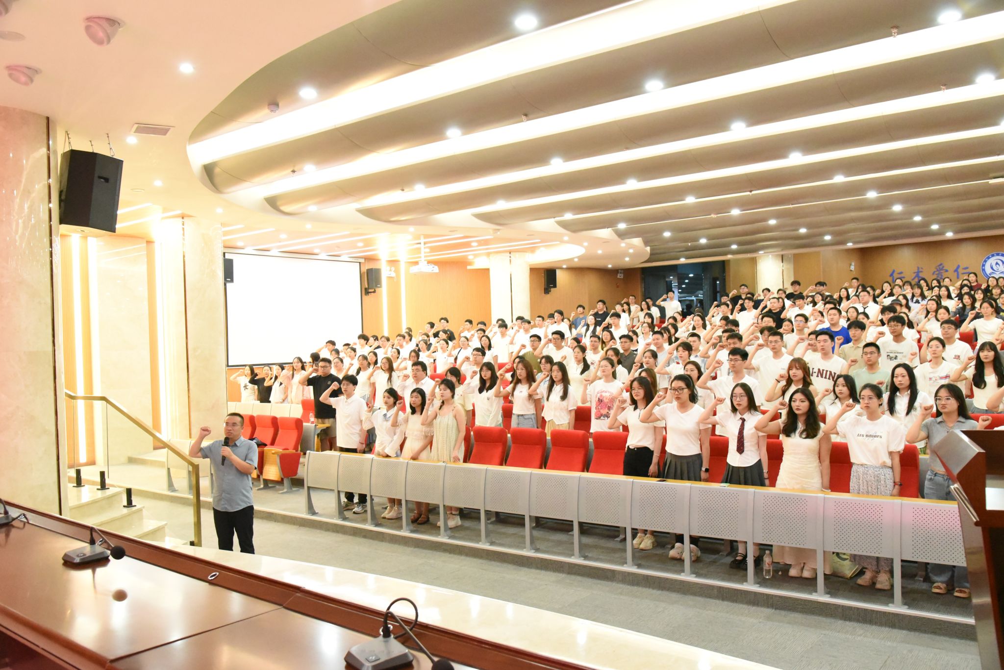 在系副主任牛海刚的领誓下,全体毕业生进行了中国医师誓言宣誓。