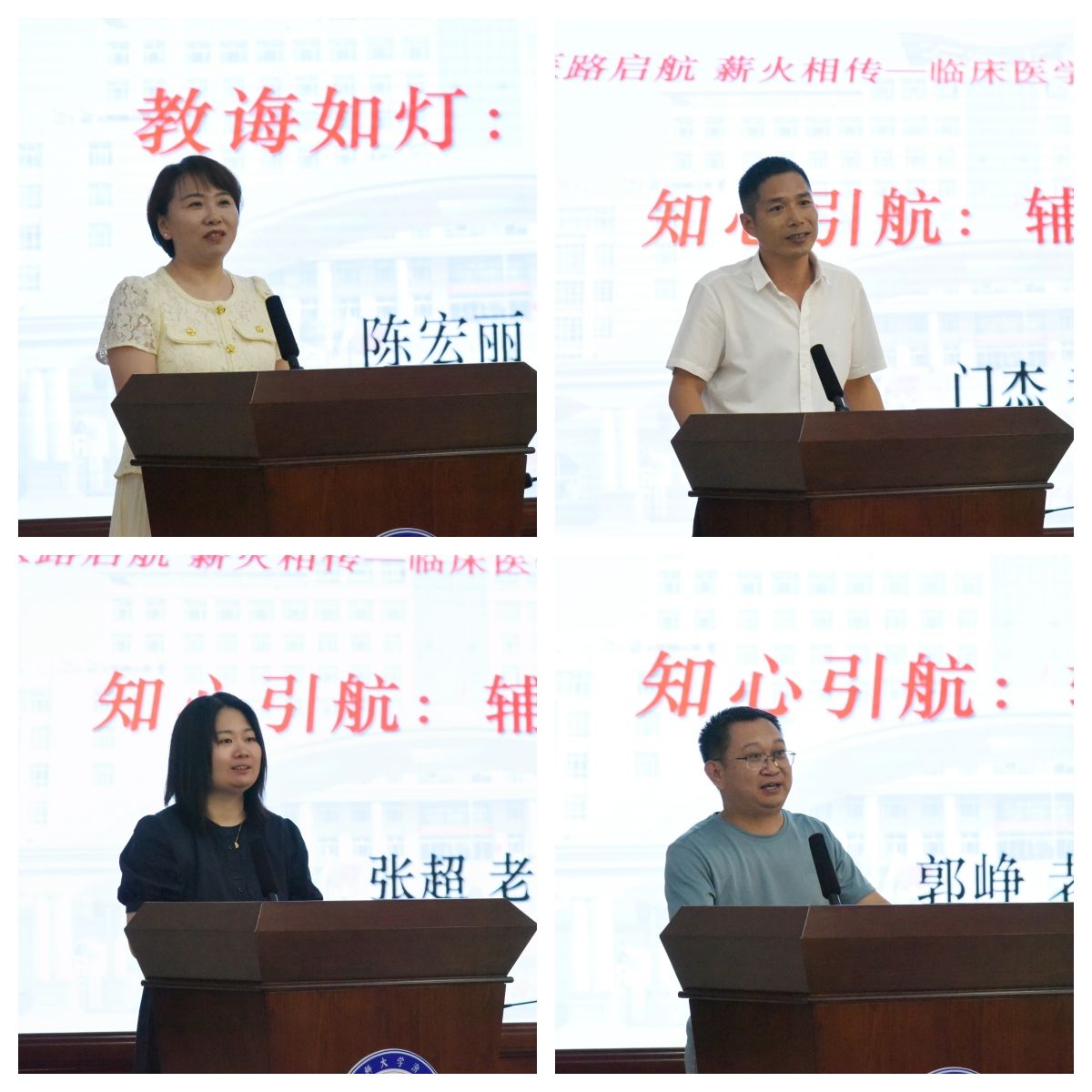 教师代表陈宏丽叮嘱毕业生要“保护同理心、捍卫专业尊严、照顾好自己”,在新的医疗环境下,要始终葆有医者仁心。毕业班的三位辅导员门杰、张超、郭峥深情回顾班级成长点滴,细数学生备战考试、参与各类竞赛、开展志愿服务的暖人故事,并为同学们送上了祝福与嘱托。